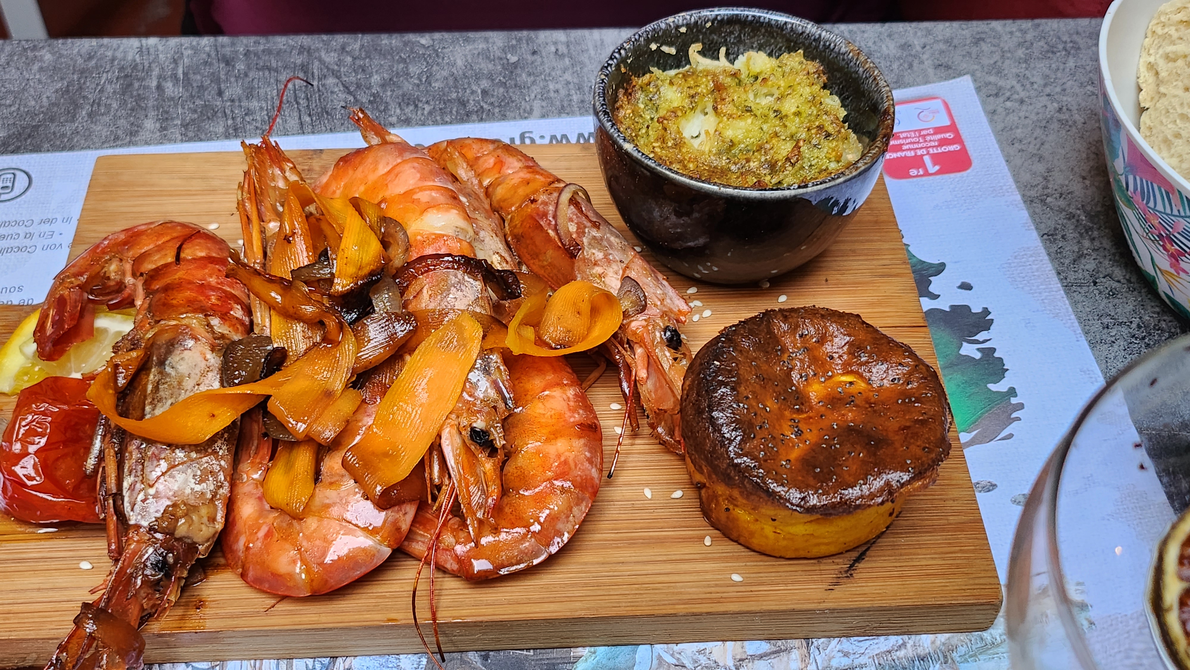 Dans une salle à l'abri du bruit de l'extérieur donc au calme . Les serveuses sont au soins La cuisine un peu déçu par contre plus de plat végétarien ça peut arriver mais pas trop de plan B à par une salade de crudité. Les gambas flambé au rhum bon pas trop senti le goût du rhum dommage . Les cocktail sont très bon Mais bon le service est vraiment agréable ils nous ont fait un prix et offert 2 shot donc on peut dire que c'est oublier.