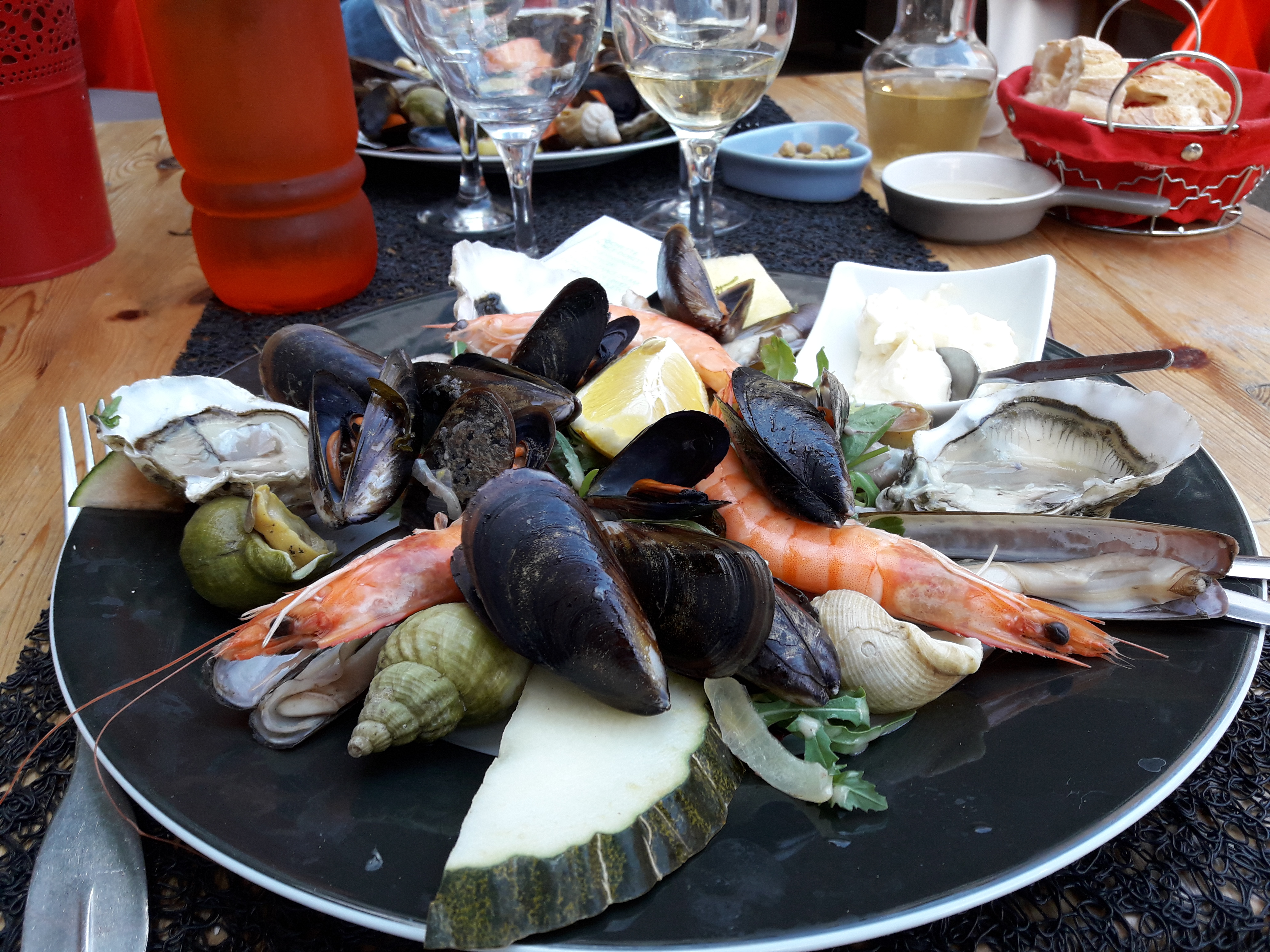 Un très bon déjeuner à leucate Personnel sympa. Plats aussi: friture et crevettes en tapas rougets et légumes variés. Brandade de morue délicieuse. Café gourmand divin.prix correct.