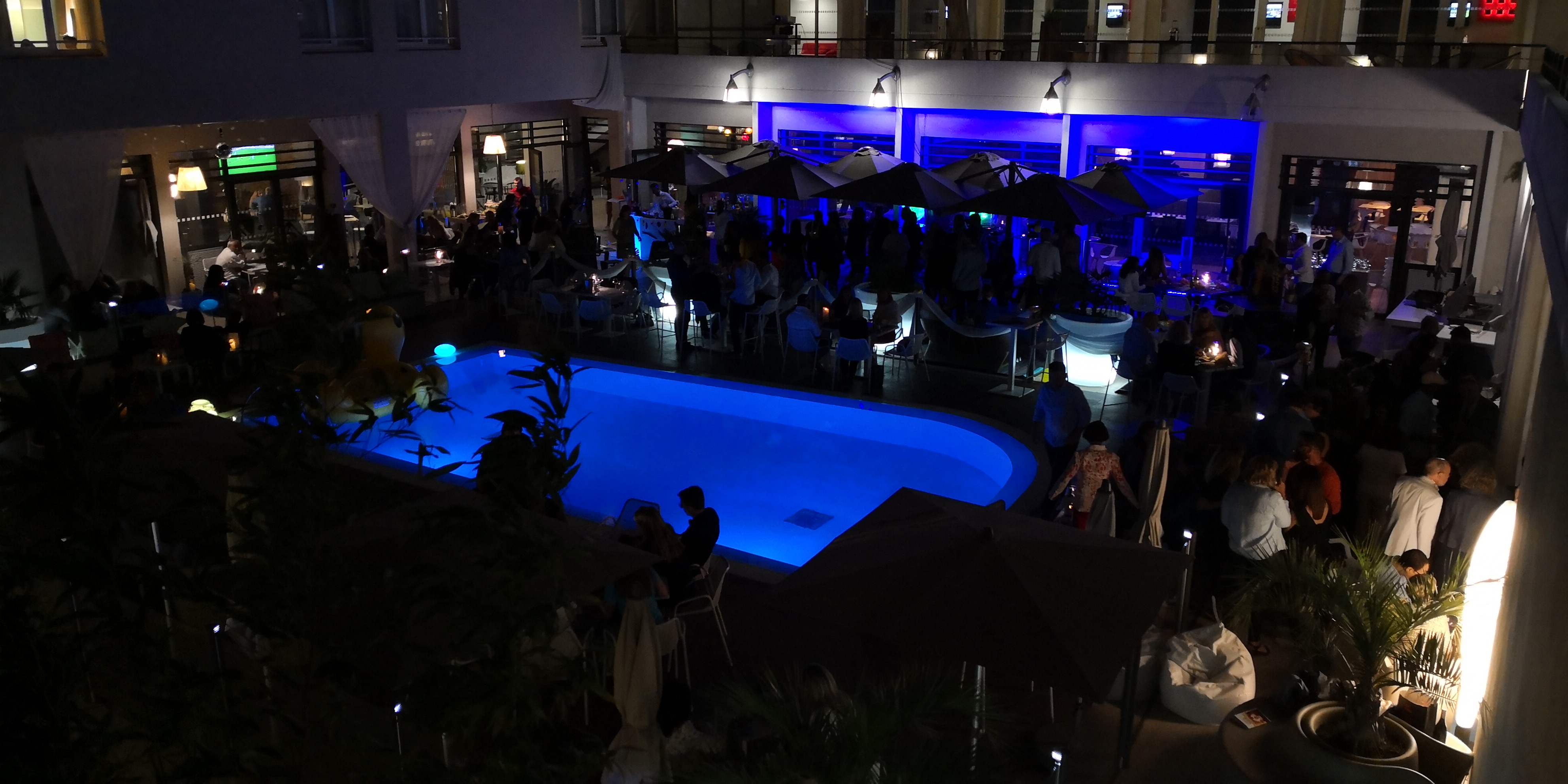 La cour intérieure, avec piscine, est vraiment agréable! C’est moderne et confortable. Le menu du jour est accessible et les plats sont simples et efficaces. La salade Cesar est copieuse. Bref, un bon moment!