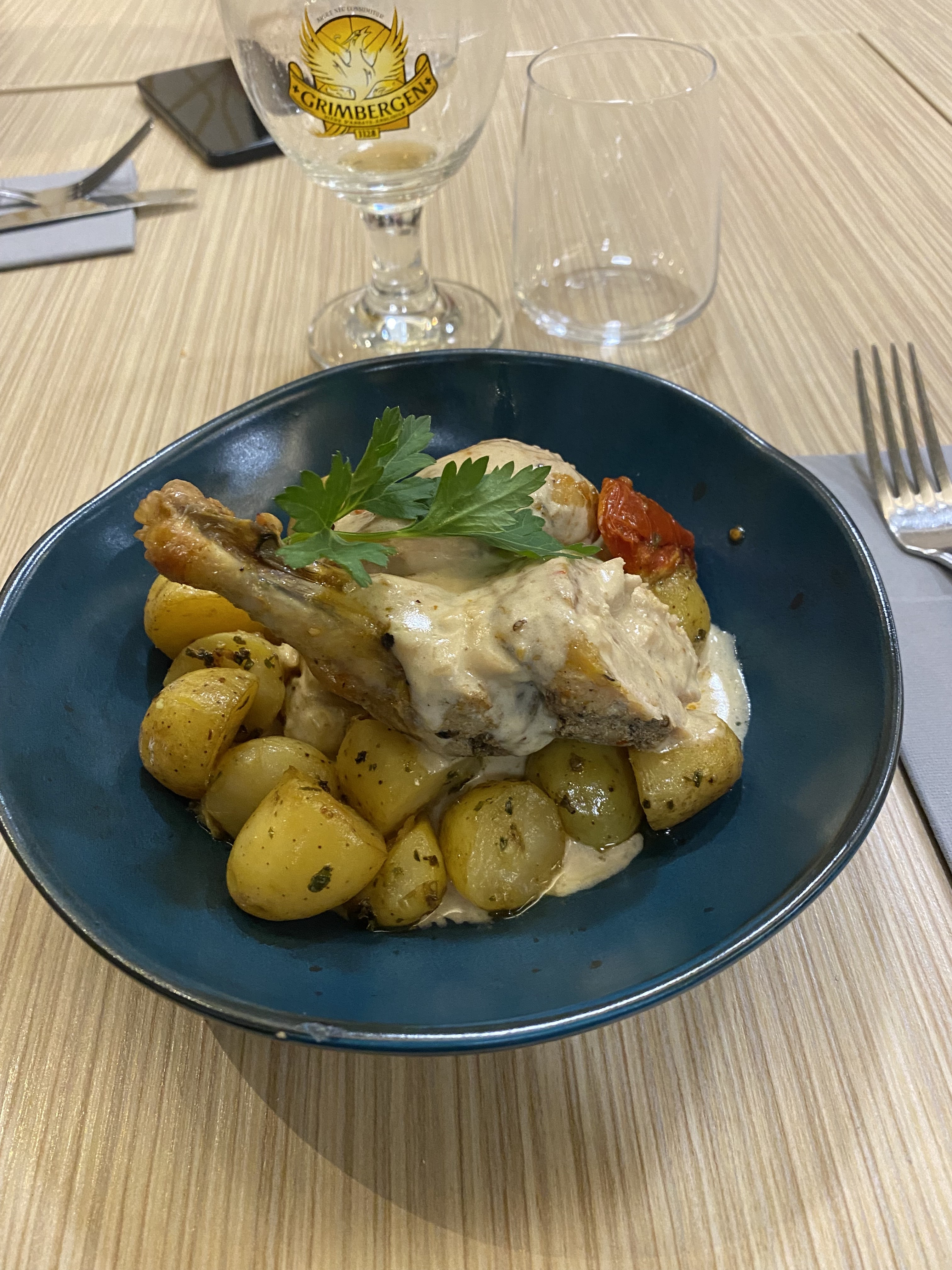 C'est un très bon restaurant avec un personnel très intentionné envers le client, le service fut impeccable, le cadre adorable . Repas avec cuisine raffinée, copieuse et très belle présentation . J'avais commandé un menu ( entrée/plat/dessert ) à 32 euros : - Un velouté de butternut, nuage de coco et œuf poché : un délice - Un filet de bœuf sauce aux morille ( avec de vrais morilles ) : renversant - Un mille feuilles aux trois chocolats : à tomber par terre . Je recommande ce restaurant à tout le monde . Bon rapport qualité/prix .