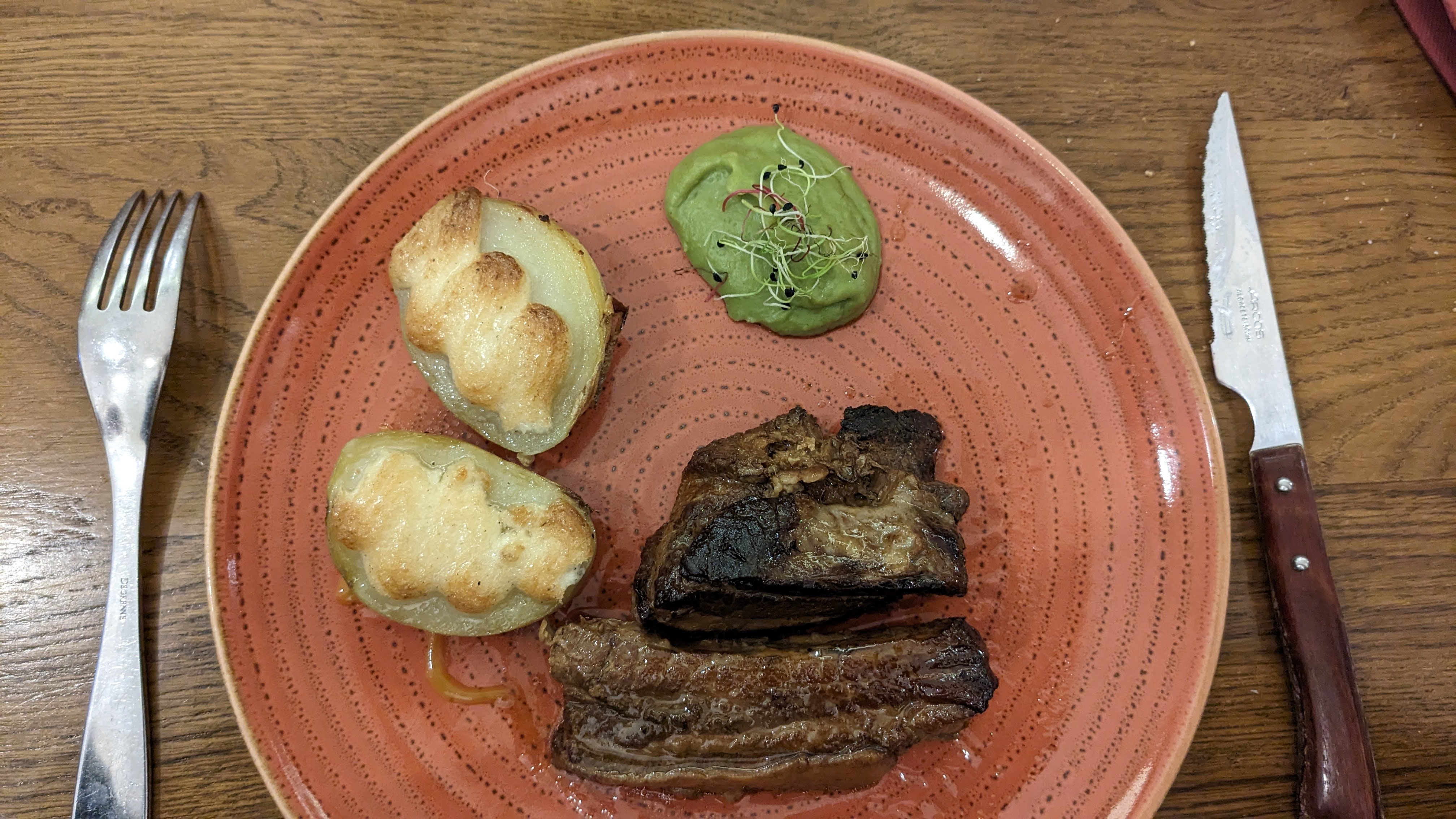Personnel très avenant. Avec notre petit bout de 17 mois, l'assiette de pâtes a été vite servie pour faire patienter l'enfant. Service rapide, viande délicieuse et présentation originale, dessert succulent. Je recommande