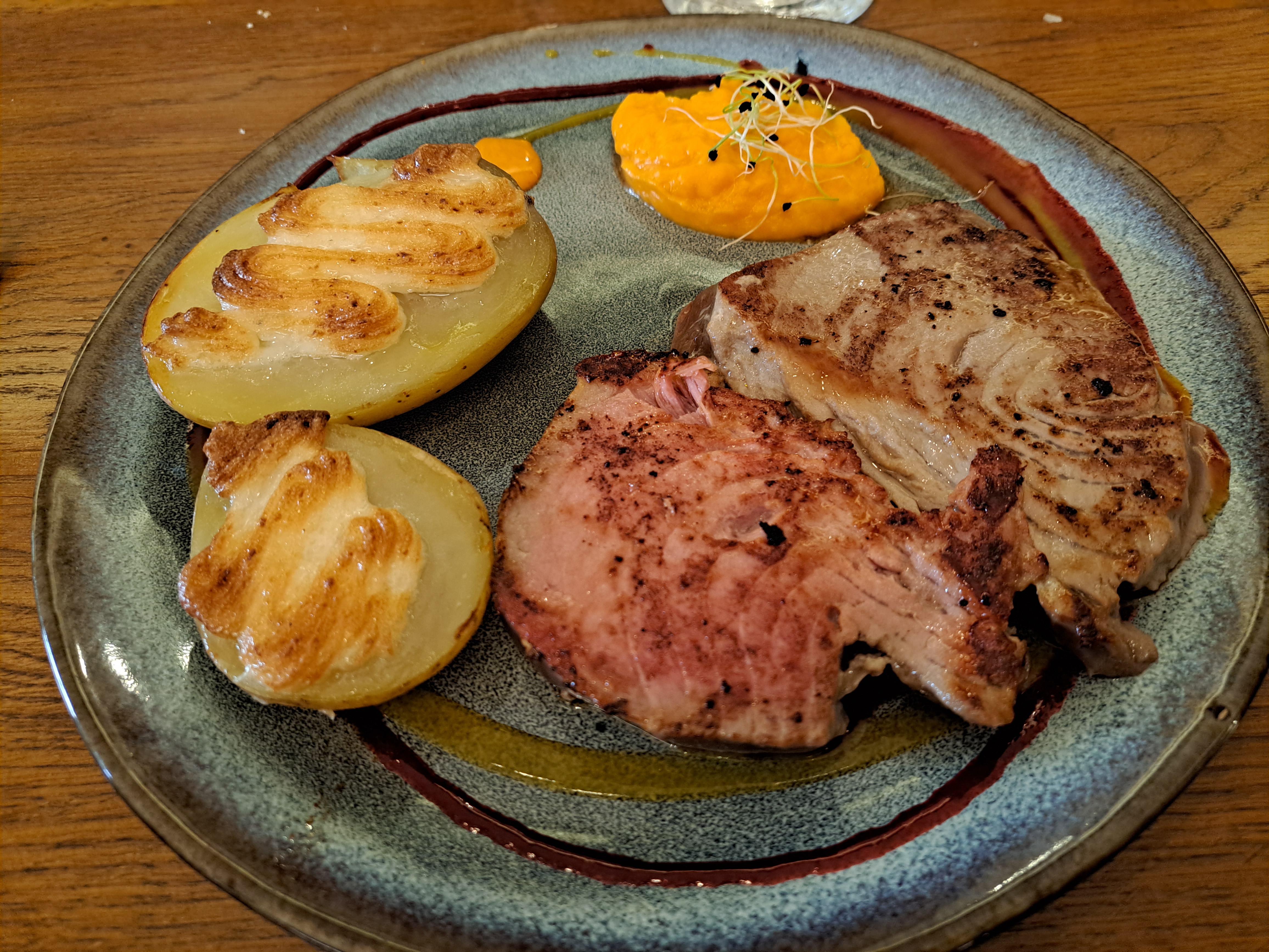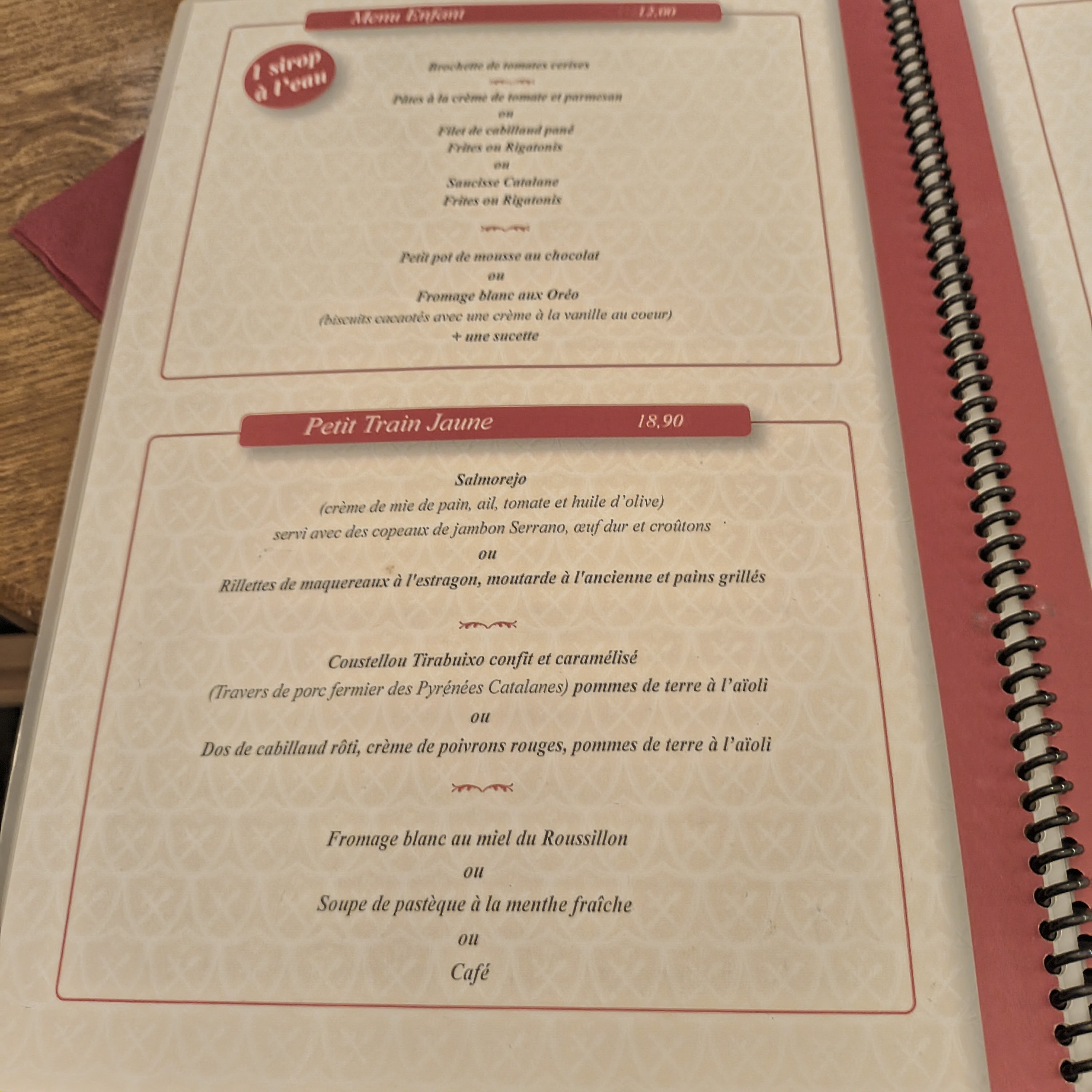 Cuisine vraiment super. Service aux petits soins. Ambiance travaillée et réussie. Possibilité de manger sans gluten. Gros plus pour le service rapide, nickel pour récupérer le Train Jaune 👍