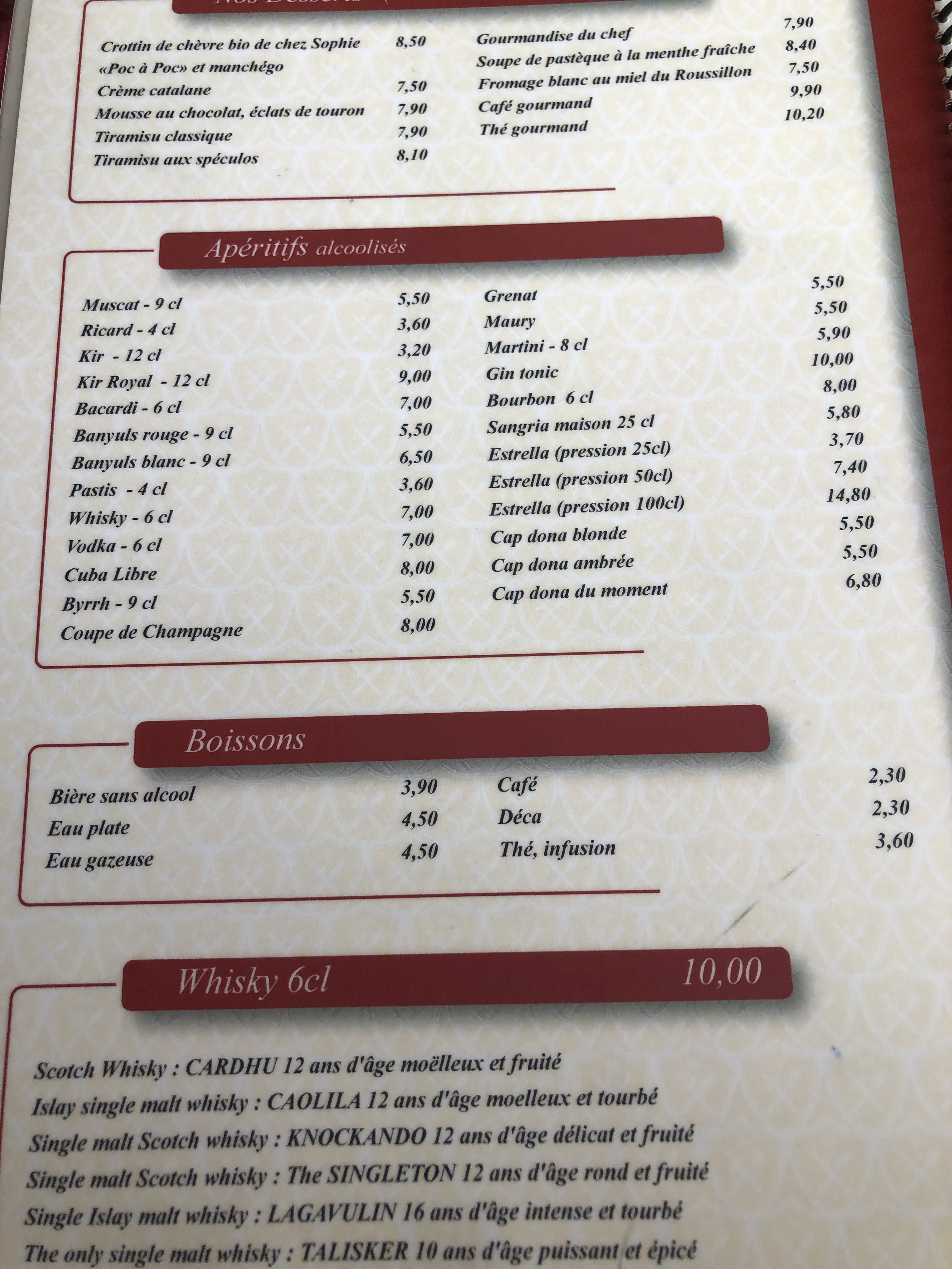 A découvrir sans modération repas à la carte copieux et délicieux Nous y retournerons sans hésitation