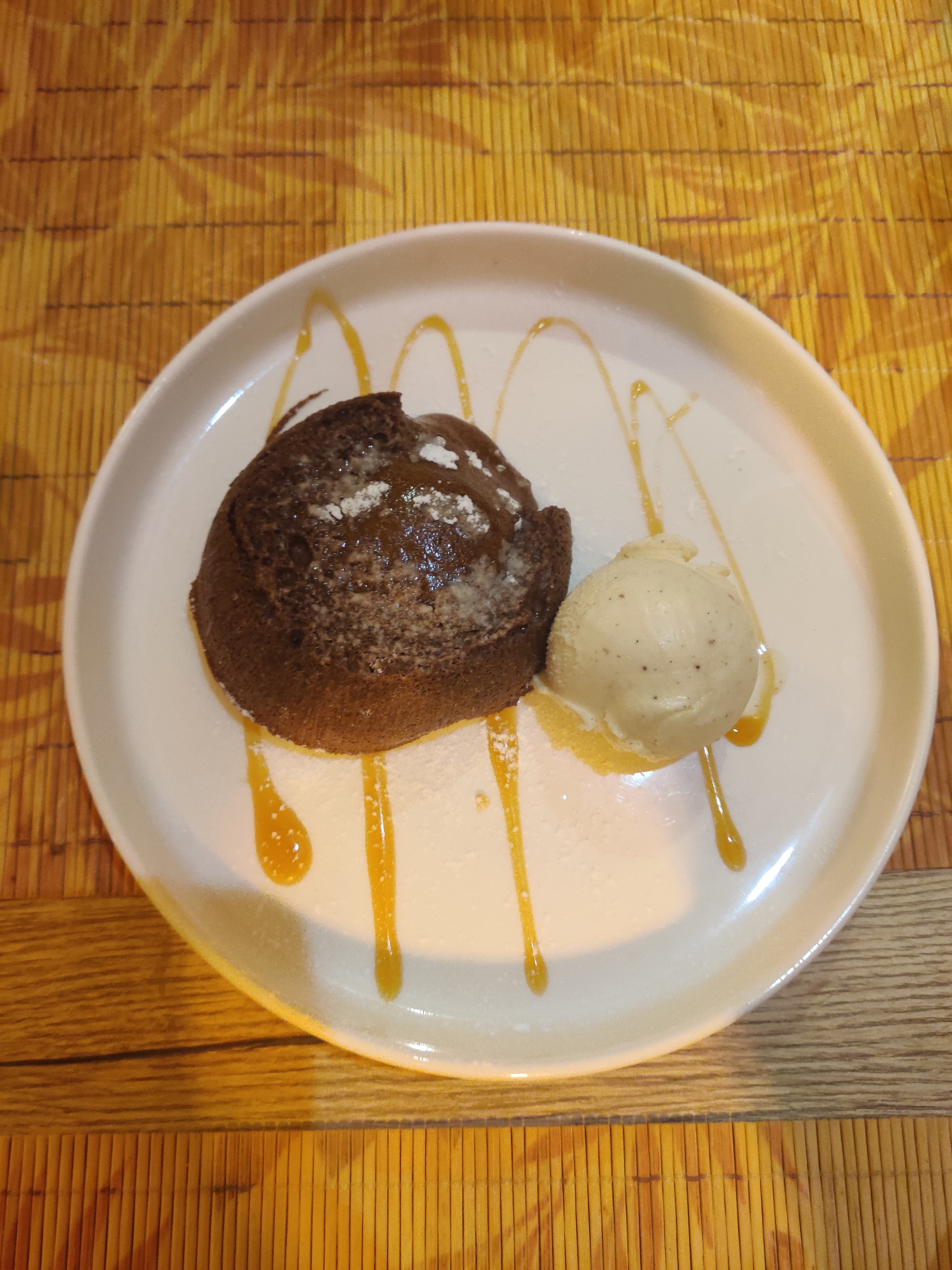 Un delice ! Ravioles au gambas , entrecôte matturée et fondant au chocolat, le tout avec un mélange de saveur exquis. Acceuil et service très sympa .