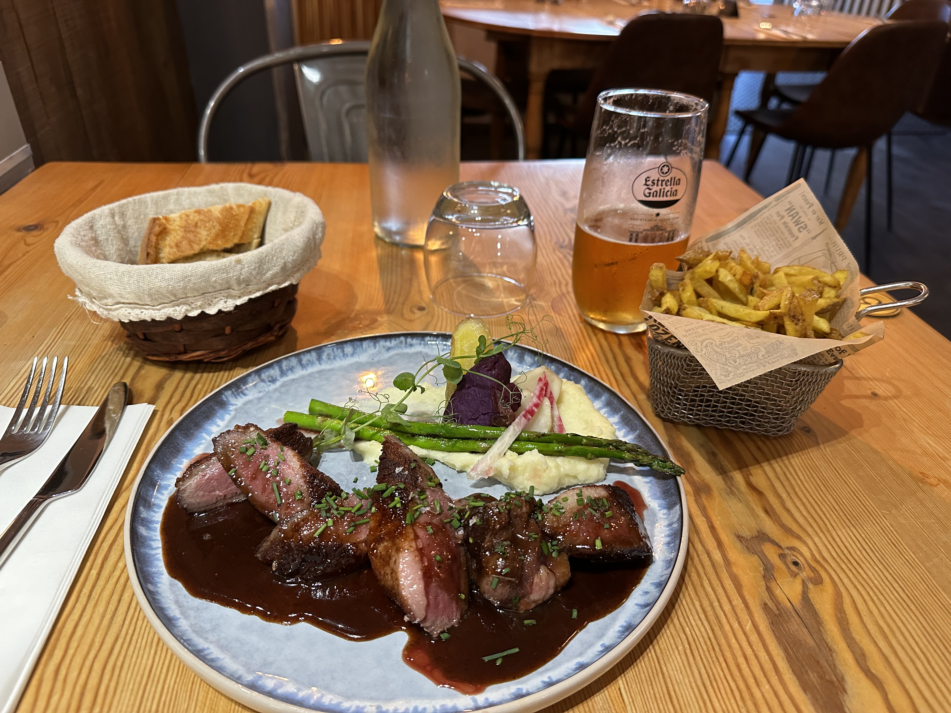Je vais être complètement honnête, le repas était savoureux, tout se passait à merveille jusqu’à ce qu’on trouve une lame de coupe-frites dans nos frites. Nous étions un peu sous le choc mais compréhensives, une erreur peut toujours arriver. En revanche la gestion de cet événement gênant, ça a été de s’excuser en riant, et de faire un « geste commercial » (à notre demande) de 4€50 sur une note de 142€. Très déçue par cette adresse qui paraissait prometteuse.