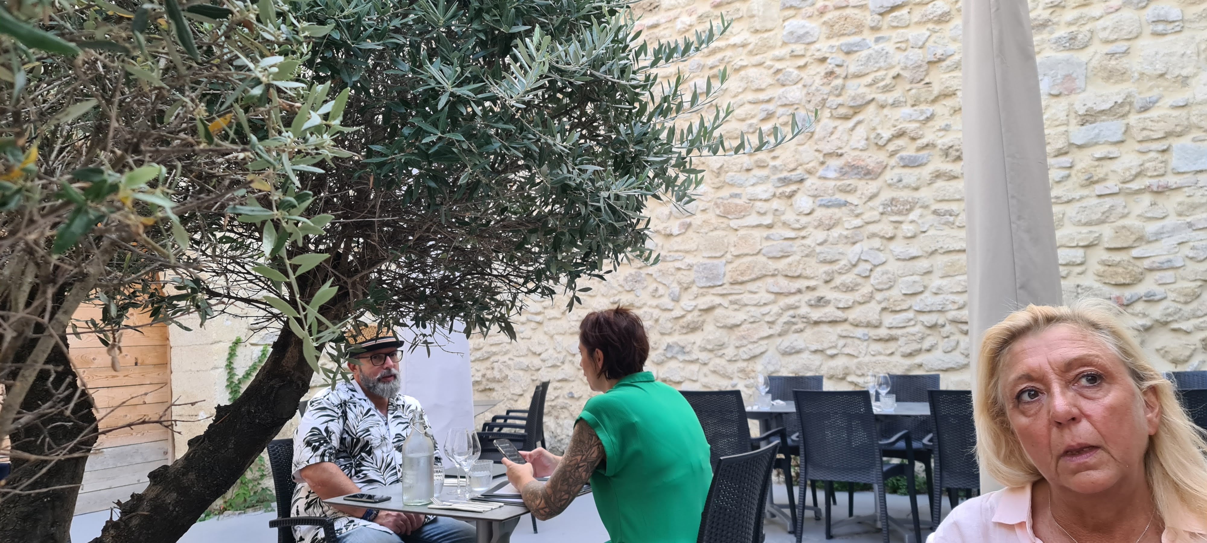 Superbe terrasse intérieure, superbe pierre du Gard,très bon restaurant à recommander