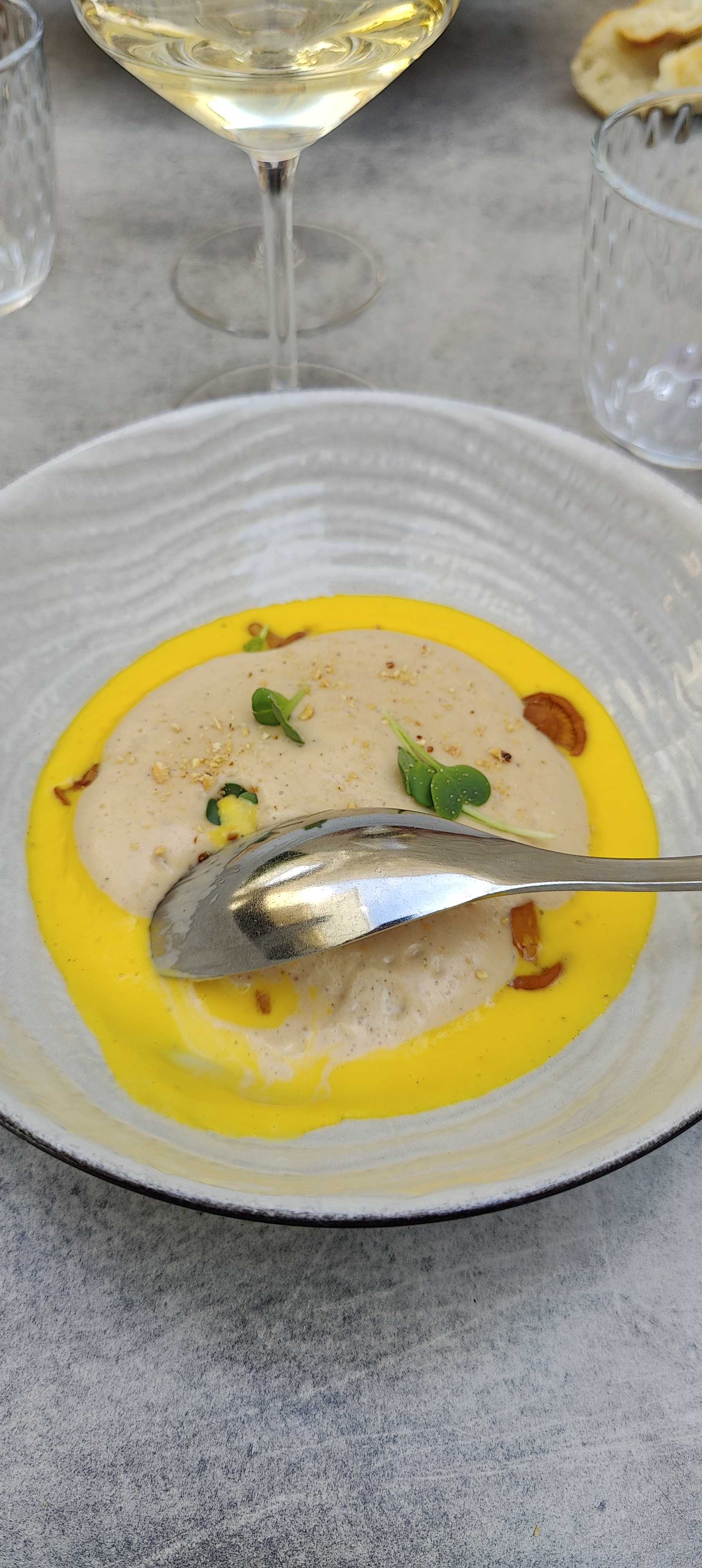 Je me suis peut être un peu trop habitué aux restaurants gastronomiques mais je ne partage pas les avis excellents d’autres internautes. Le service était “transactionnel” et beaucoup trop longue pour ce niveau d’établissement (2 heures d’attente pour deux plats) ce qui a gâché l’ambiance - aucune geste commercial proposé ni une verre de vin pour passer le temps (on a juste enlevé le verre de mon mari quand il était vide) Les plats était de qualité et cuisinés certes mais je ne les trouvais pas exceptionnels non plus. Quand même pas donné pour un service moyen (68 euros pour le menu découverte)… salle jolie et jolis assiettes mais bon ça ne fait pas tout. Je suis déçue de l’ensemble, désolée.