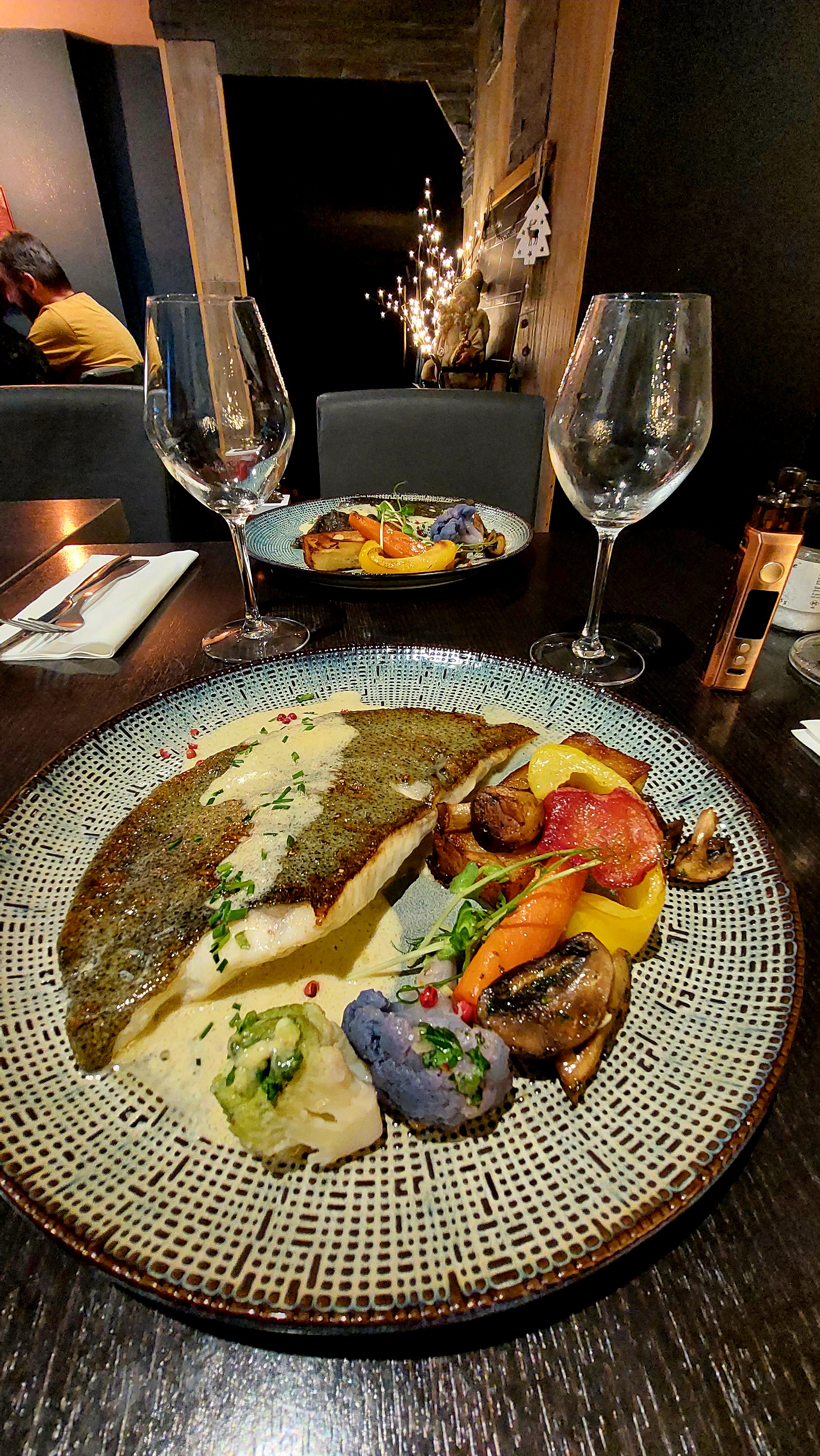 A la dernière minute nous avons cherché un restaurant sur internet, seulement eux étaient ok de recevoir jusqu’à 22h (pourtant ce n’est pas la période estivale, c’est plutôt cool), plats très raffinés, excellent, vraiment ! Plat : poisson du jour, riz à l’encre de seiche ou frites maison sous forme de gratin, petits légumes 25€. Dessert moelleux au chocolat (chocolat très fort à mon goût) 8,50€, un genre de framboisier revisiter à la pistache 8€50 une dinguerie. Menu enfant 15€ poisson frais frites légumes ou viande rouge. Pas grand chose à dire…peut-être une formule plat dessert ou entrée plat le soir afin que ça soit un peu plus avantageux. Merci à l’équipe, on reviendra.