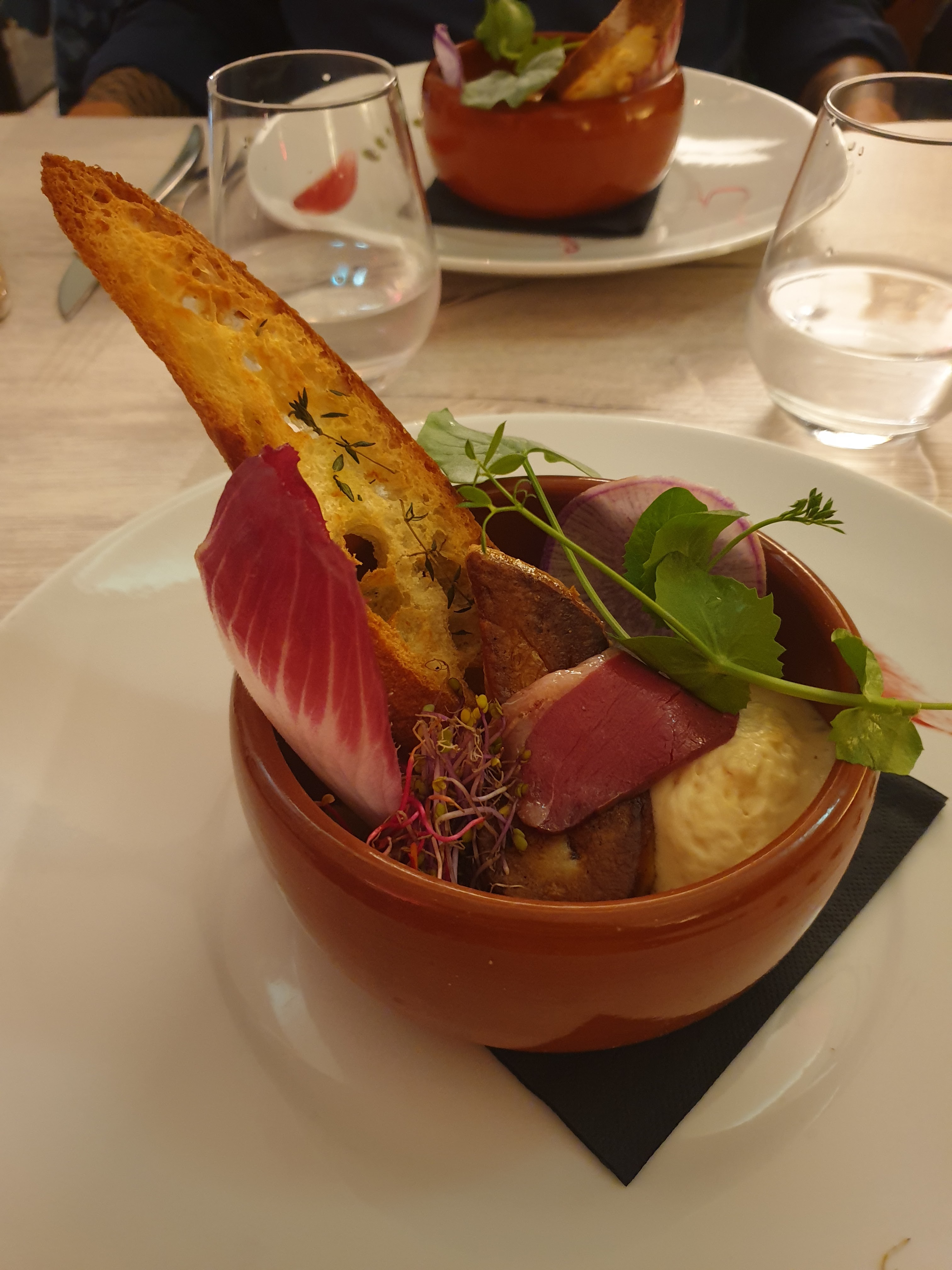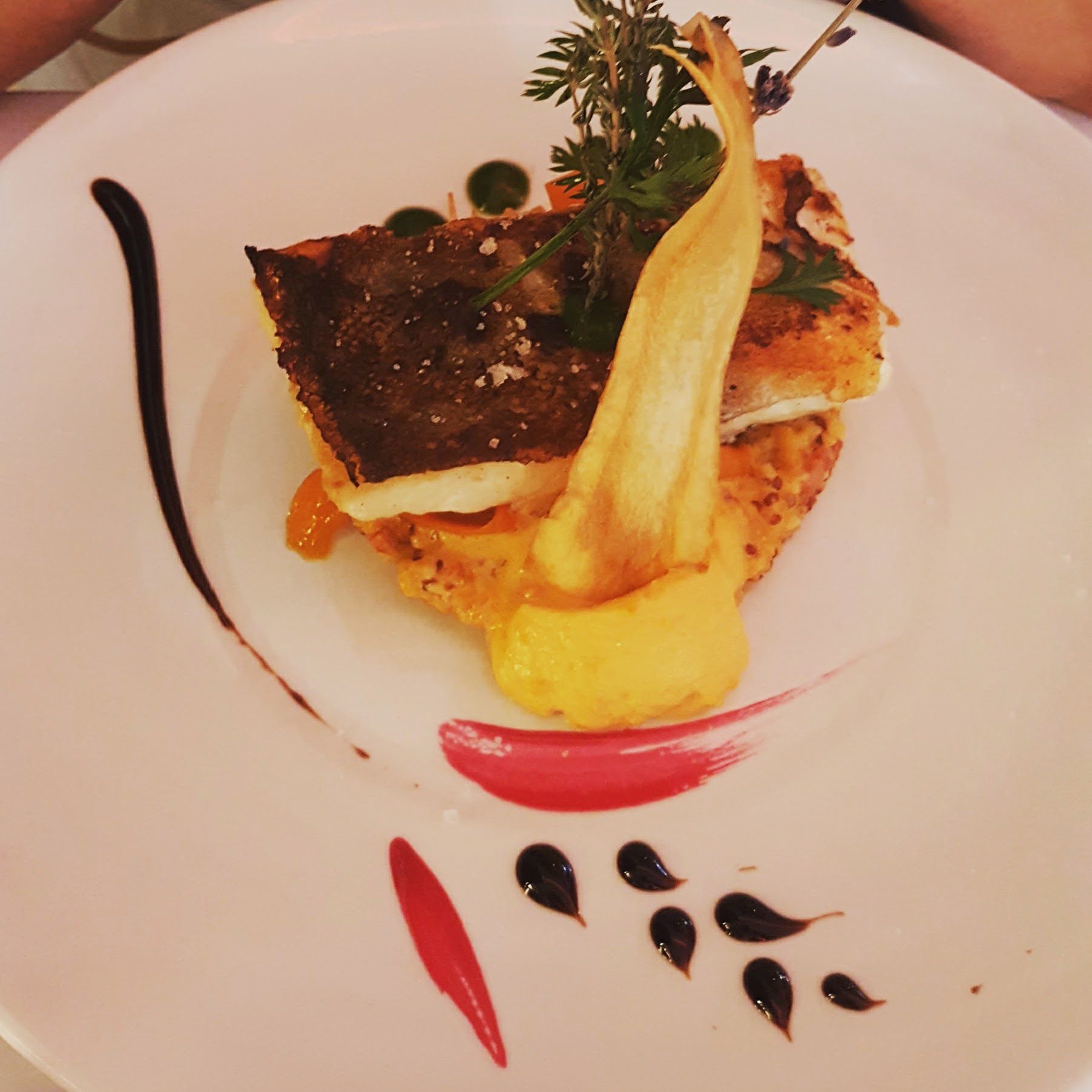serveur très sympa belle assiette mais un peu trop topchef qualité excellente mais prix excessif par rapport à d'autres restaurants de la region offrant la même qualité notamment la patronne passant près des tables sans saluer ses clients