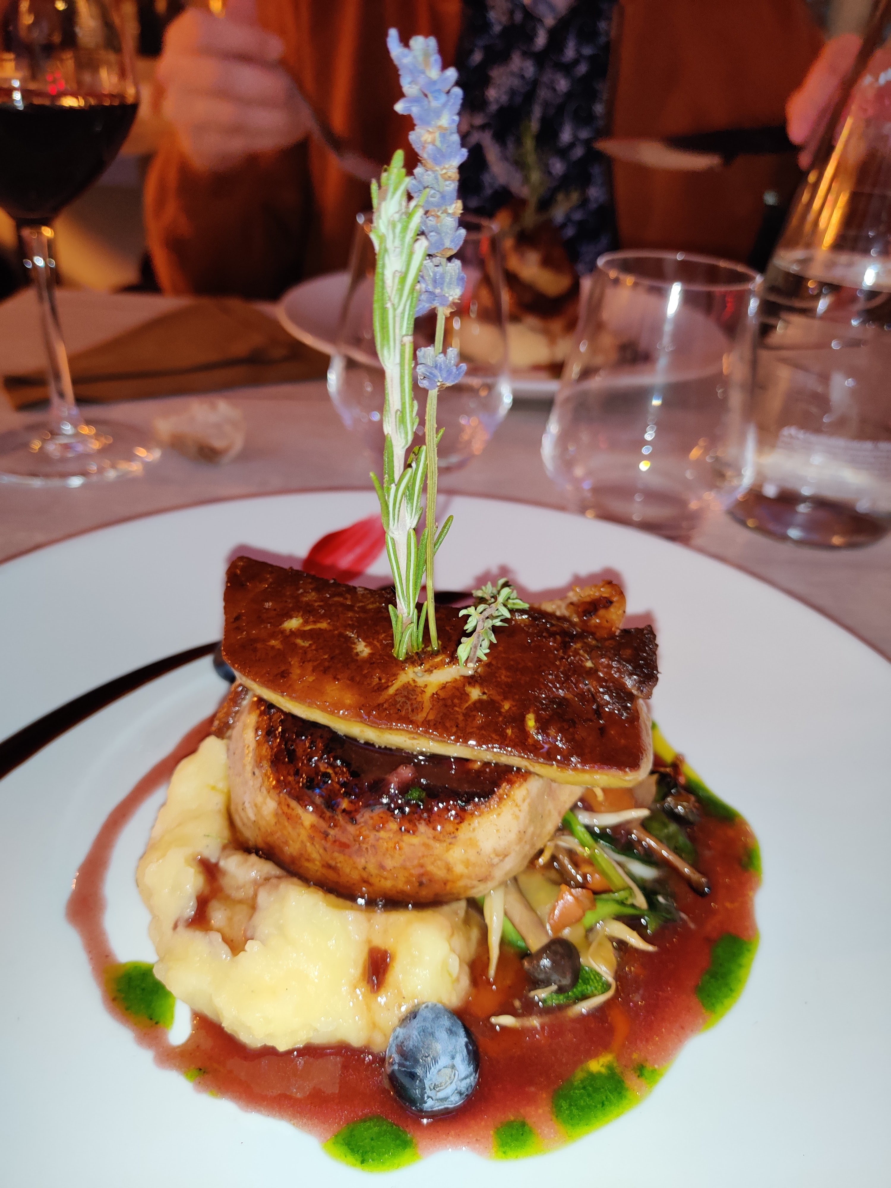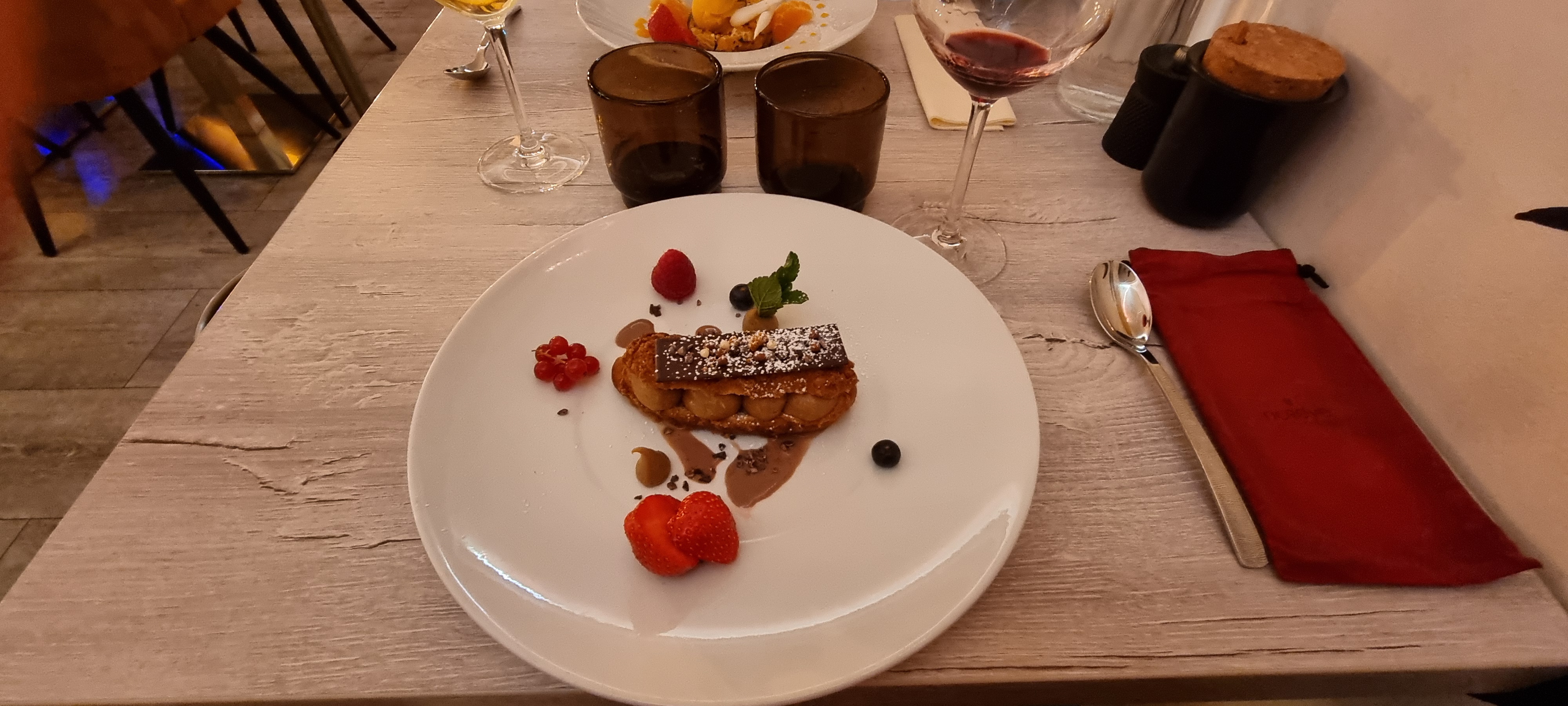 Un mélange de saveur original et fin, de l'apéritif au dessert. Décoration et service soigné. C'était parfait.