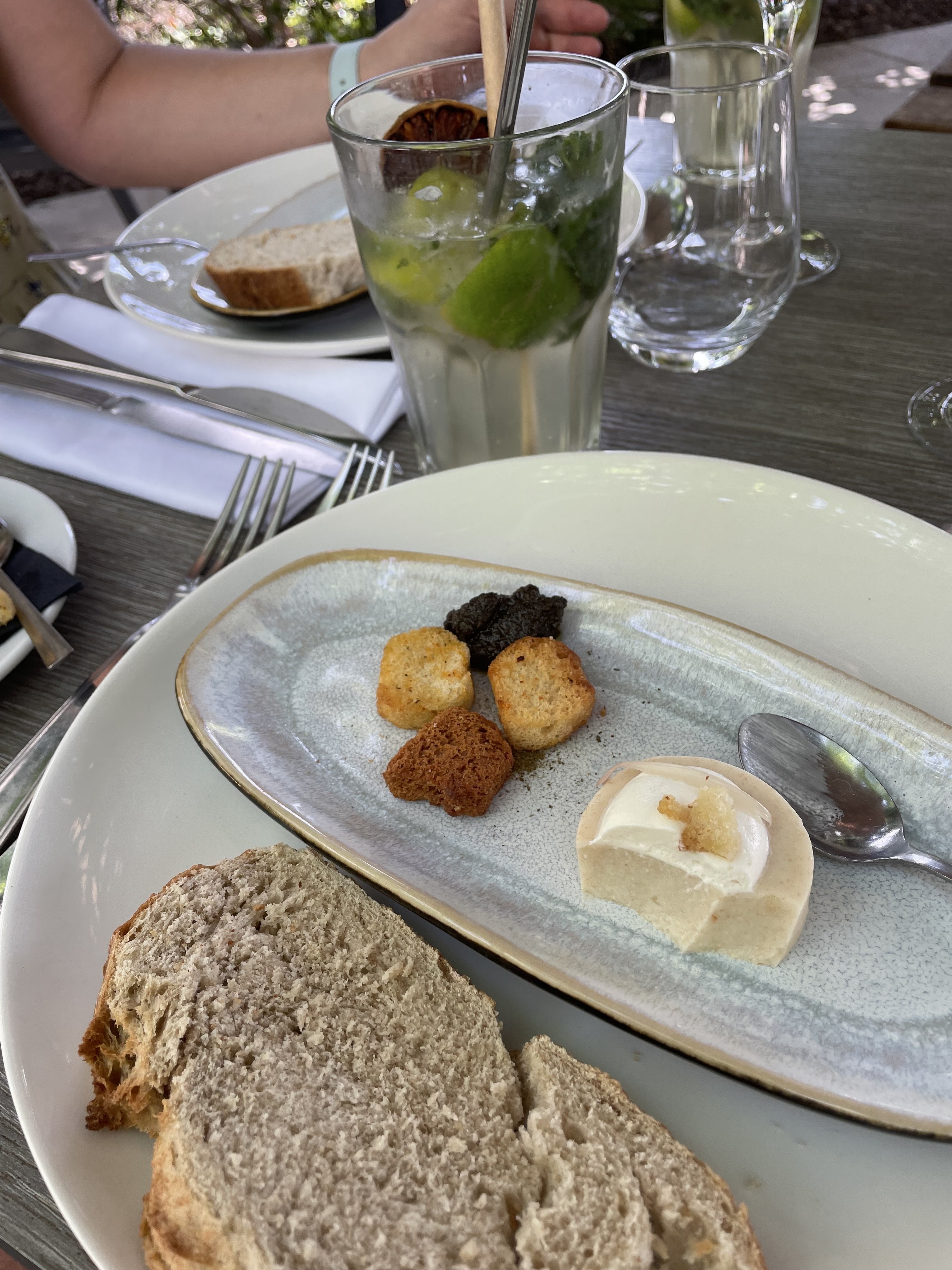 Un bon début d'expérience avec une entrée originale et savoureuse, un plat très bien présenté et gouteux. En revanche, petit bémol sur les desserts qui n'étaient pas à la hauteur du début de repas. Dommage ... Le service est agréable et le cadre sympathique. Il manque peu être quelques petits lampions / guirlandes sur la terrasse qui donnerait davantage de charme à cet endroit perdu dans les vignes !