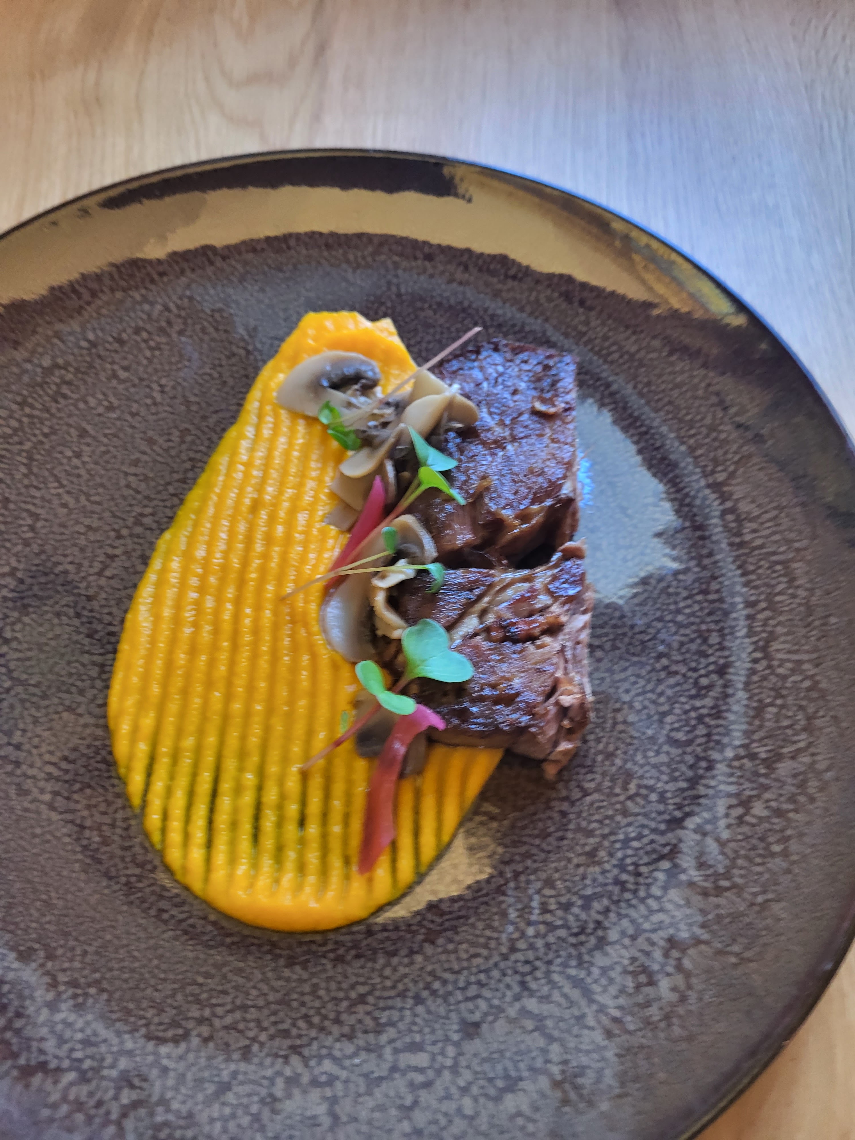 Très bel établissement. Très bon repas dommage à peine chaud... Belle variété de saveurs beaux mélanges... dessert butternut figues a tomber ... Gros hic les plantes artificielles à l entrée...