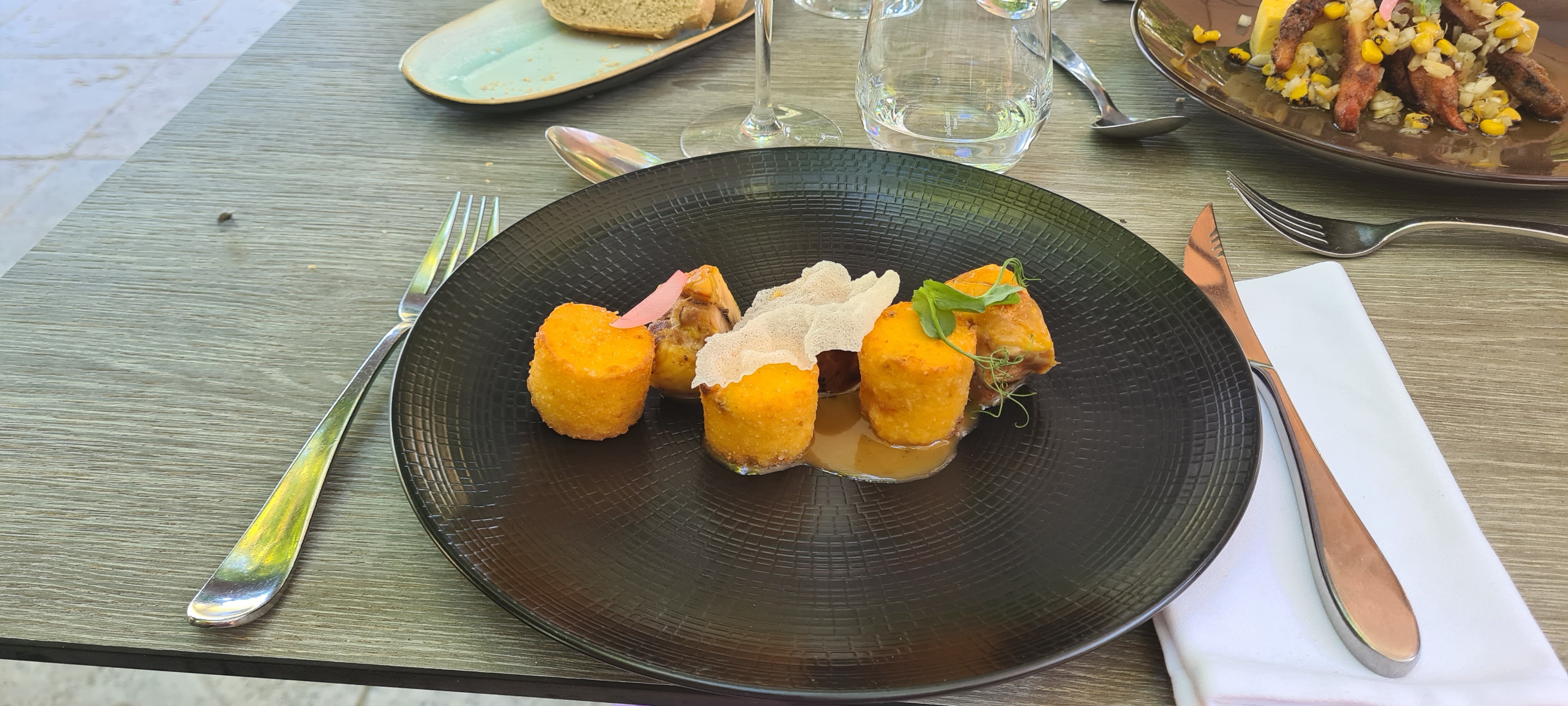 Cadre magnifique avec vue sur les vignes, personnel au petit soin, beaucoup de saveurs dans les assiettes et très belle présentation des plats. On recommande