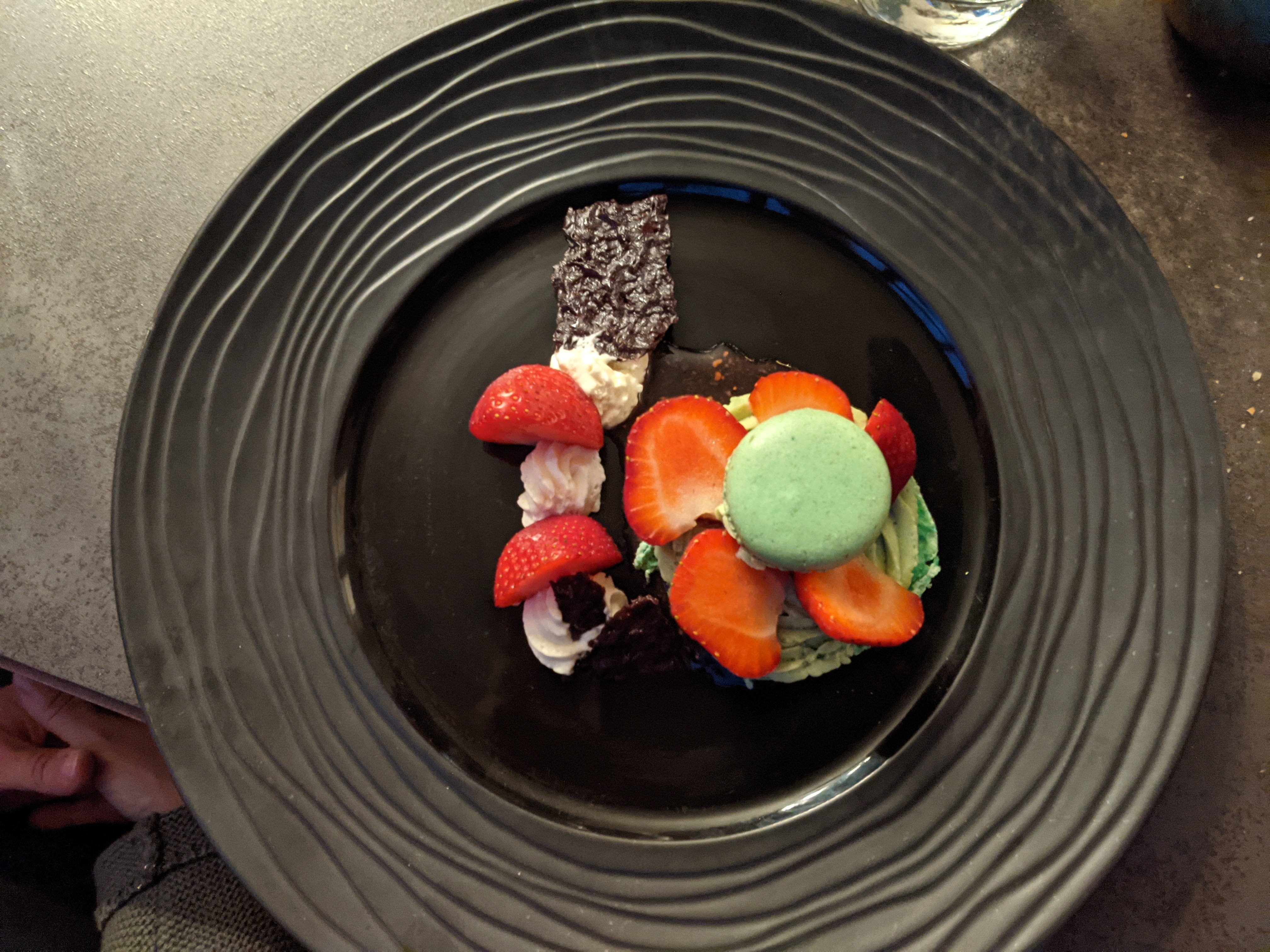 Excellent ! Les plats sont originaux et très bon il n'y a pas pleins de plats à choisir et ça c'est top cela permet une plus grande fraîcheur au niveau des produits j'y retournerai sans problème dommage pour la dernière photo il faisait nuit c'est un dessert gelée de martini blanc et curacao avec fruits rouges extra