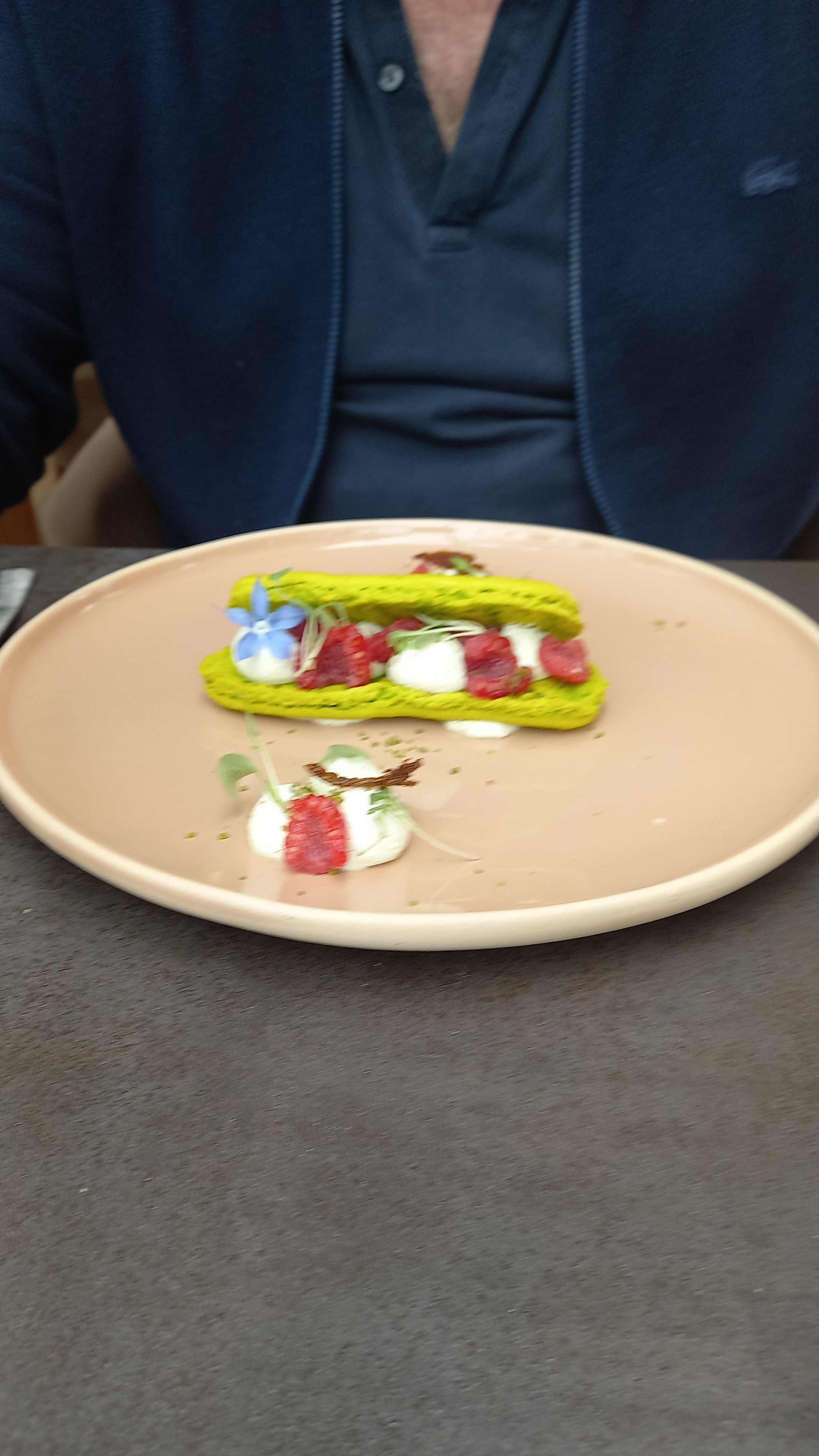Cuisine délicieuse à part le dessert décevant MAIS quantités minuscules ET je suis actuellement à table pour la Saint Valentin nous sommes arrivés à 19h il est 21h29 et nous venons à peine de manger notre plat.. service interminable où il faut attendre que toutes les tables aient fini pour passer à la suite.. quel dommage pour une soirée de saint Valentin de rester à table durant 3h.. 95 euros c’est cher pour les quantités et l’attente!