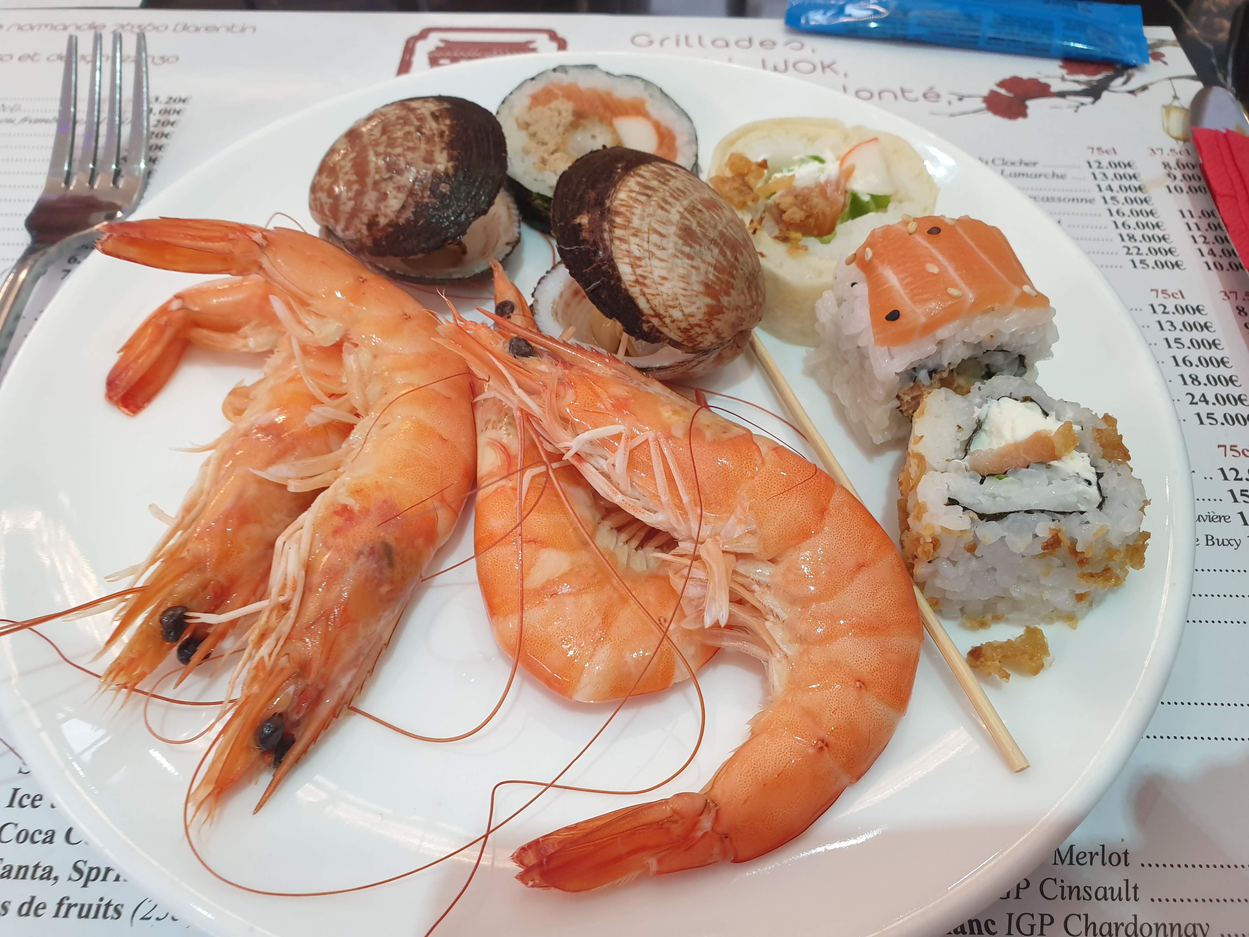 Nous avons vraiment apprécié notre dîner dans ce restaurant, avons été impressionnés par la quantités et la diversités des mets proposés, sans remettre en question la fraîcheur (avons testés les fruits de mer, sushi, maki, plats en sauce, wok, nems....nous étions 7 !) Le prix du menu sera au goût de chacun et de son ressenti budget, raisonnable ou trop élevé, mais il est intéressant de savoir qu'il y a un découpage par âge (adulte, ado, enfant) et que c'est offert pour les moins de 4ans 😊