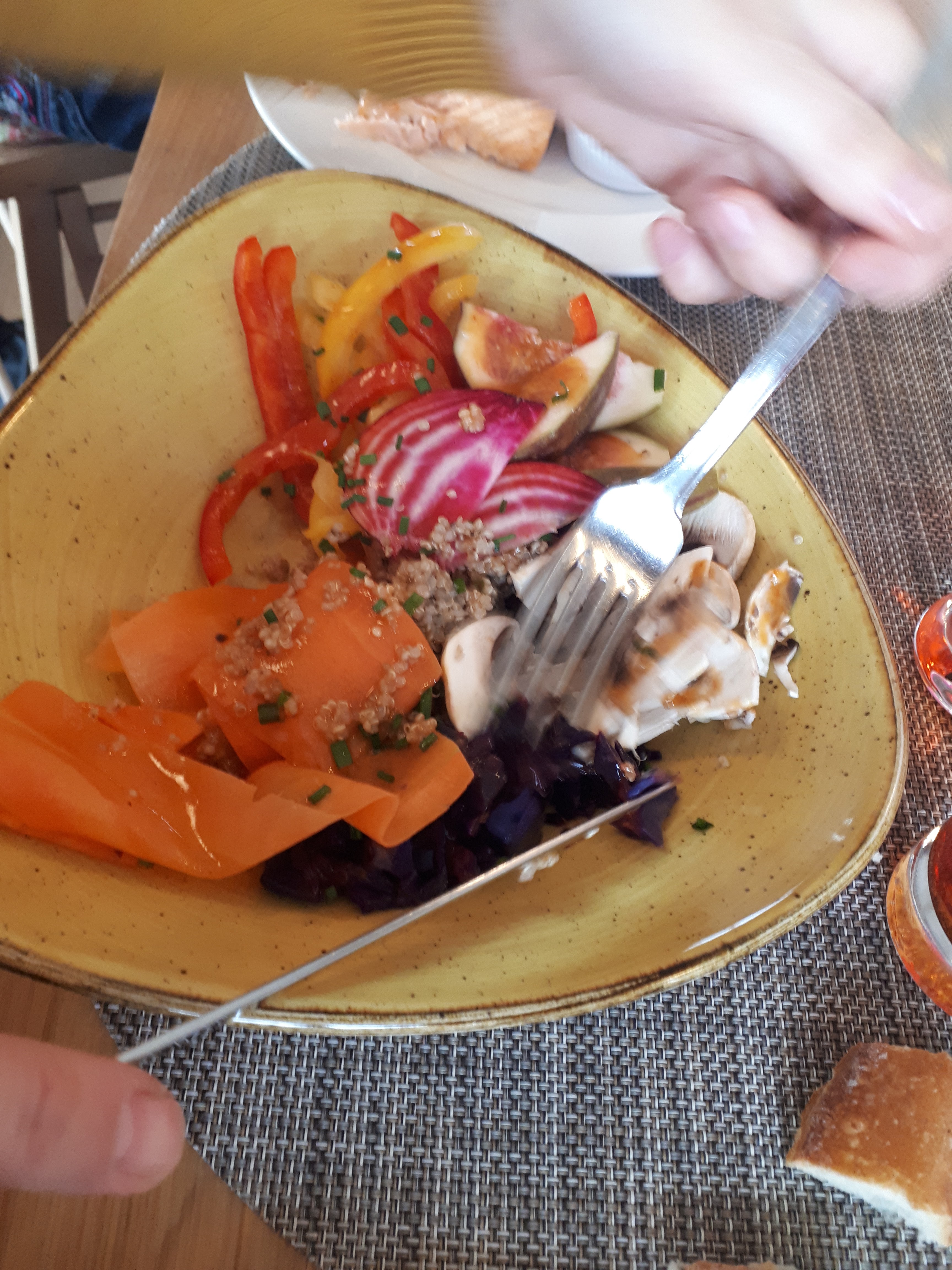 La nourriture est très bonne, on a pris le velouté au champignons (tres bonne!) Et le risotto cabillaud, dont le gout de risotto domine et un poke bowl. Les personnes qui travaillent la bas ne sont pas souriantes, le serveur nous a servi le plat avec l'oeuf sans le Velouté, apres nos interrrogations, il nous a regardé bizarrement.