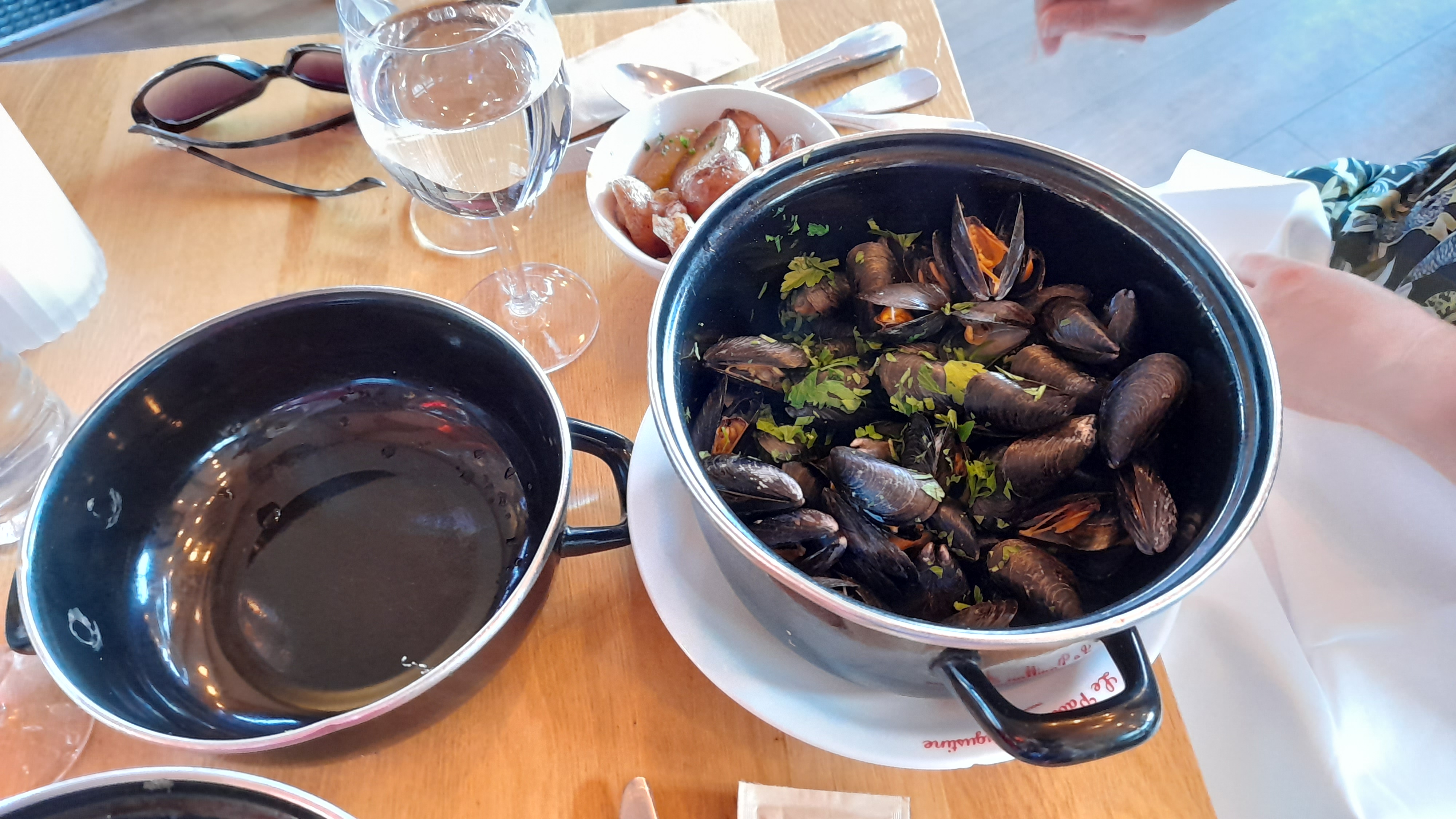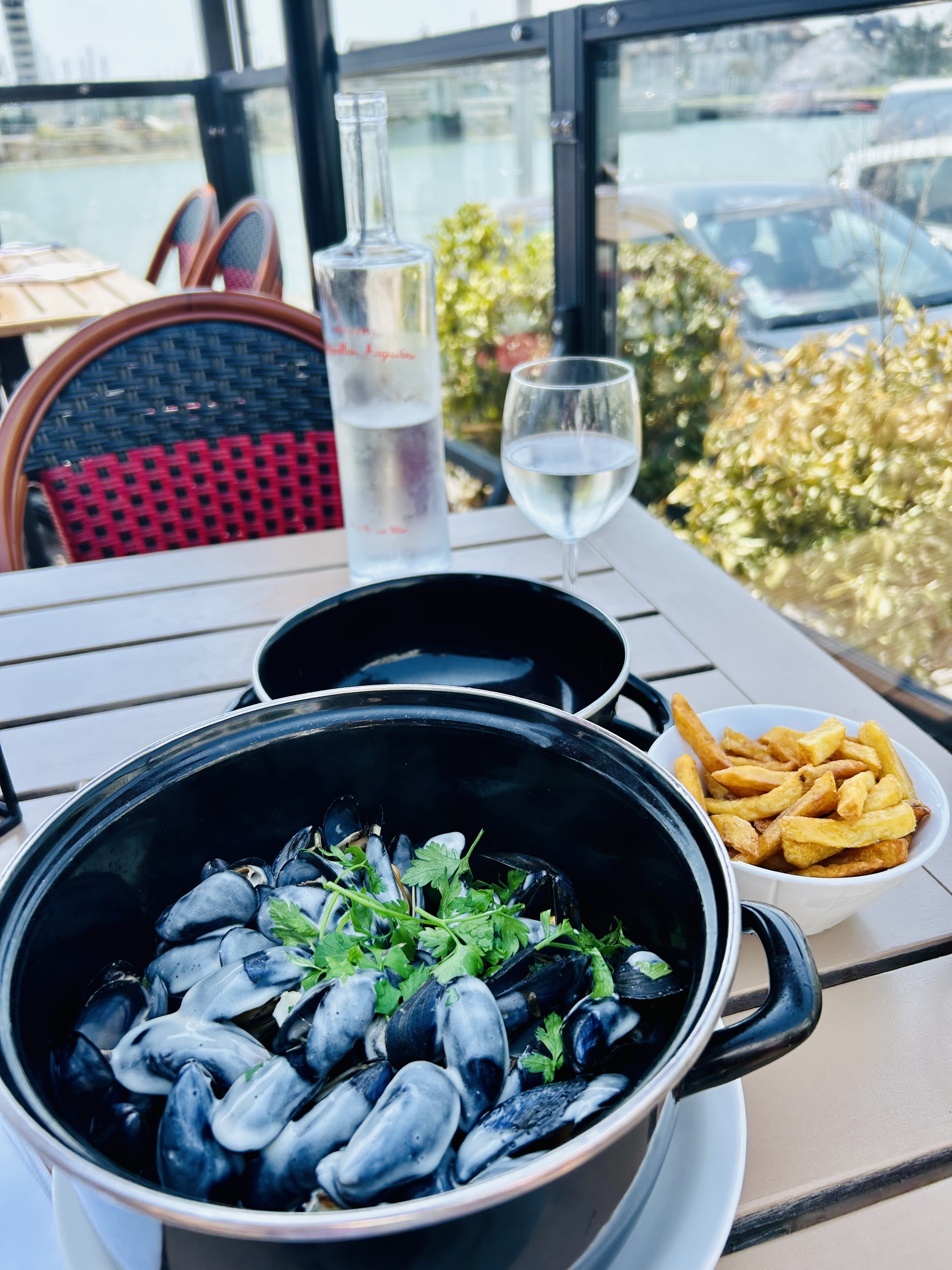 comment peut on servir des frites comme ça ?? le pire c'est que le responsable nous a presque mis dehors car nous avons fait une réflexion sur les frites . Je site que nous avons rien a faire chez eux, que nous ne savons pas faire des frites, qu'ils n'avaient pas le temps d'éplucher les pomme de terre. les moules n'etaient pas grattés,et c’était la restriction de créme la sauce etait presque inexistante , il nous a répondu, qu'avec 400 repas jour ils n'avaient pas de temps de les grattés. Il nous a fait comprendre qu'il etait la meilleur table de Trouville , donc notre réclamation n'etait pas recevable, et qu'il en avait rien a faire. en faite si vous êtes touriste vous n'avez pas votre mot a dire. Dommage car nous venions régulièrement dans se restaurant et nous n'avions jamais eu de problème.