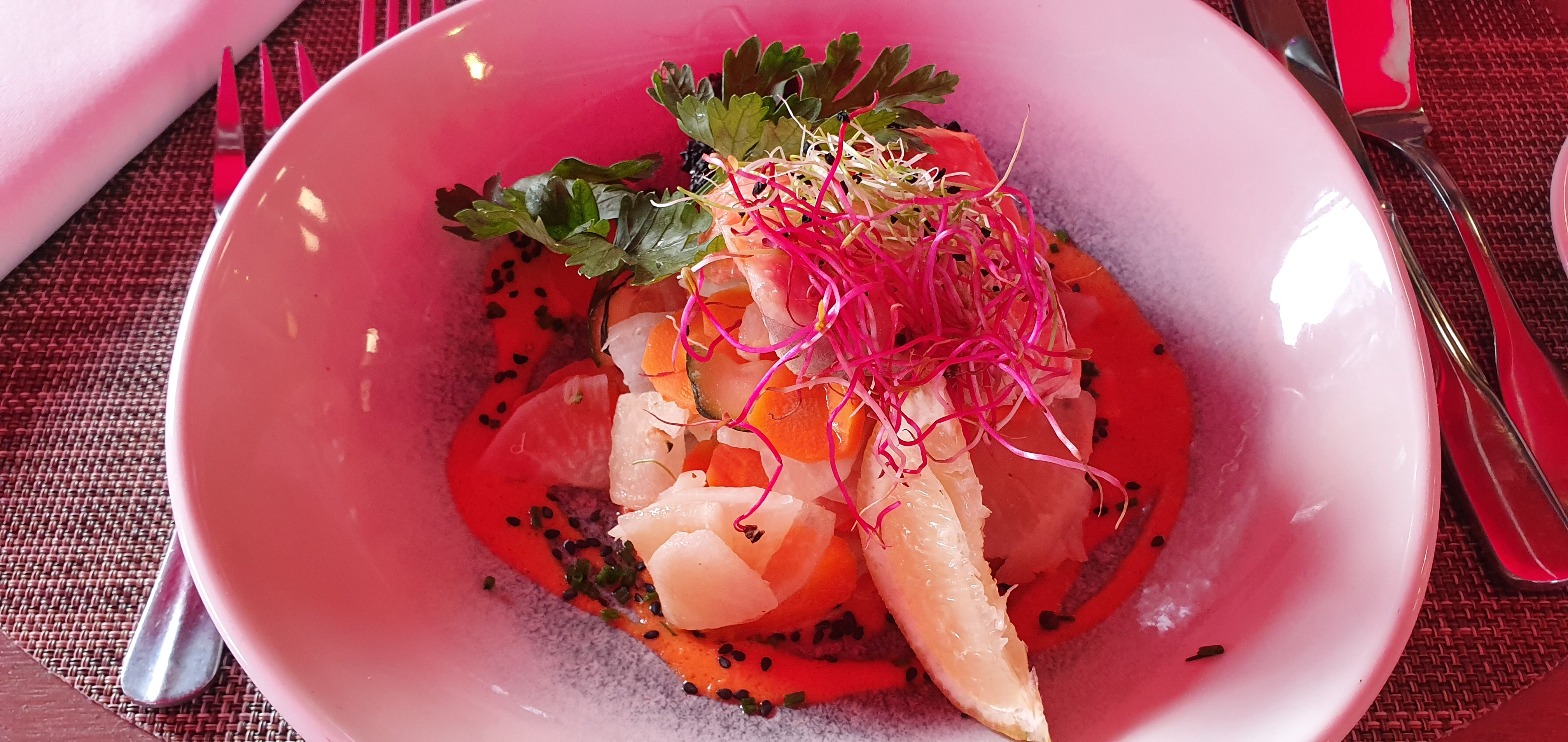Tres bel endroit et service en gants blancs. La terrasse est à couper le souffle et on se sent très bien reçu. Seul bémol pour le Poke Bowl trop vinaigré, par contre Gambas velouté de champignon… thon snackes étaient délicieux. Nous reviendrons avec plaisir.