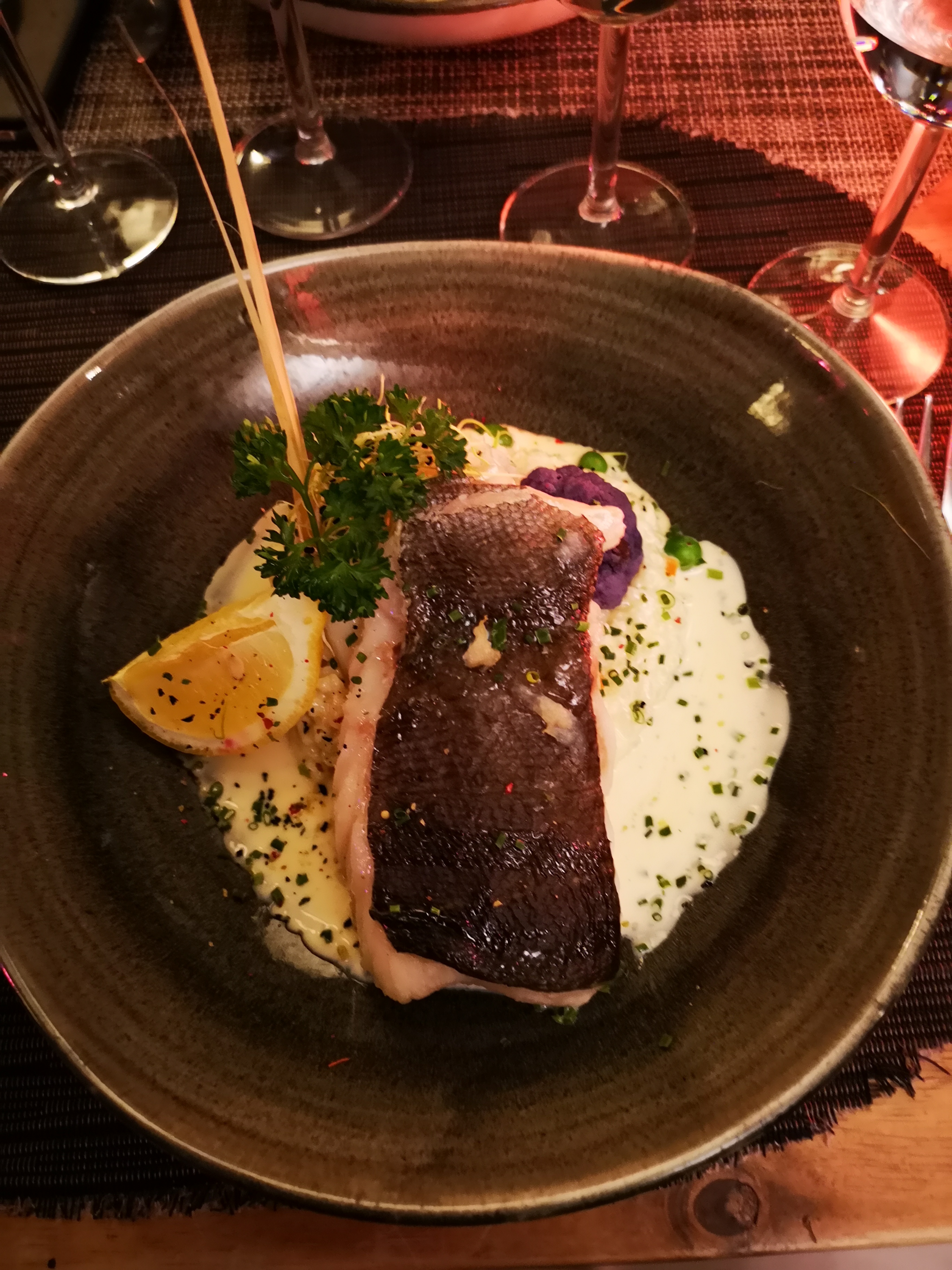 Déco chaleureuse. Serveurs attentifs et agréables. Le velouté de champignon est un délice, le plat; daurade avec son risotto était très savoureux. Nous avons passé une très bonne soirée. La qualité des produits se ressent dans les assiettes. Merci beaucoup.