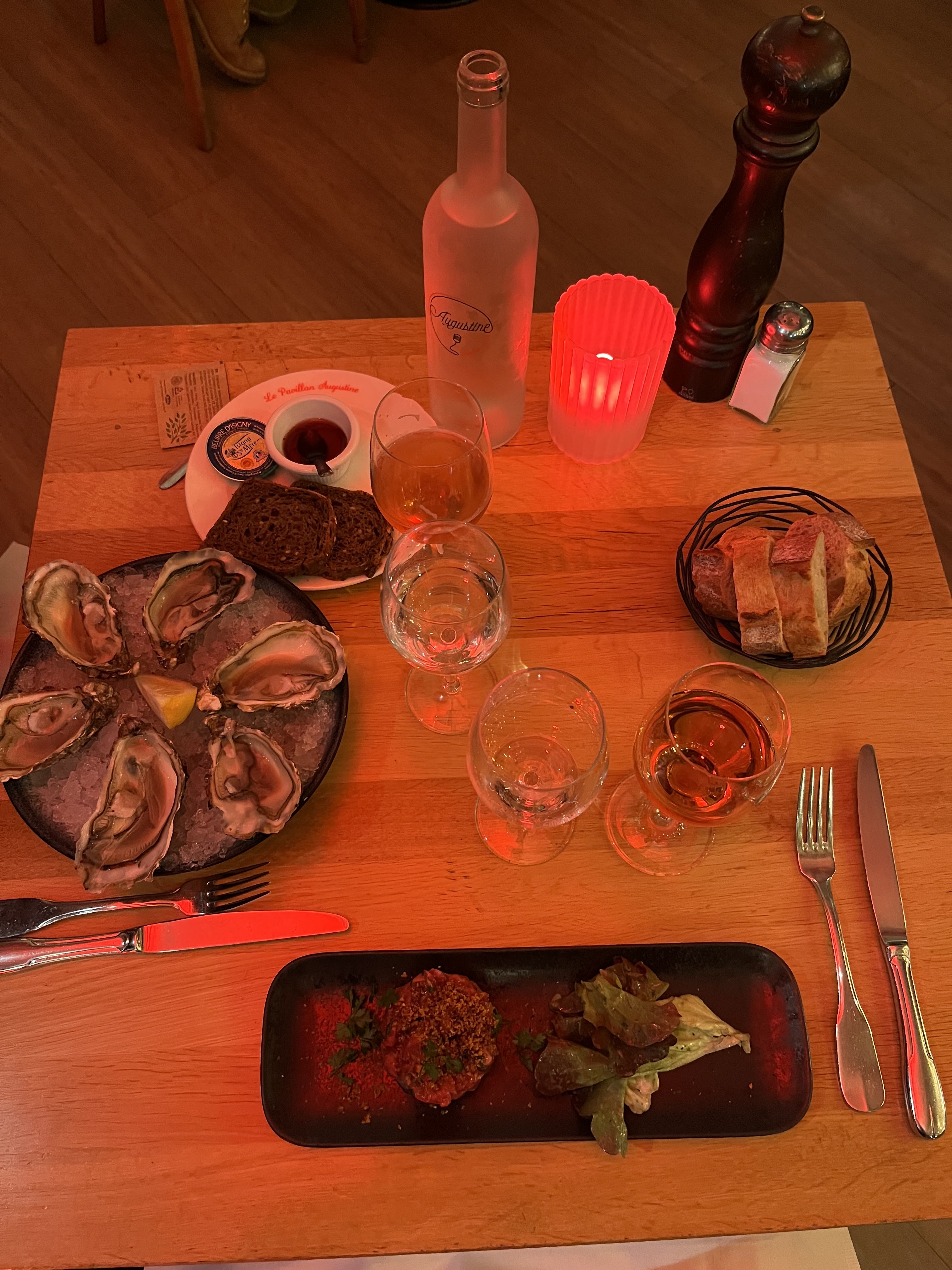 Super restaurant.Vraie bonne bouffe.chaque passage a Trouville-sur-Mer, donne l occasion de dîner au pavillon Augustine, et chaque fois l équipe d Arnaud, donne une grande gamelle d eau à mon berger Allemand.Des gens compétents, sérieux, drôles , sympathiques, pleins d humour qui donnent une bonne humeur.Merci et a bientôt !zuta la censure !!