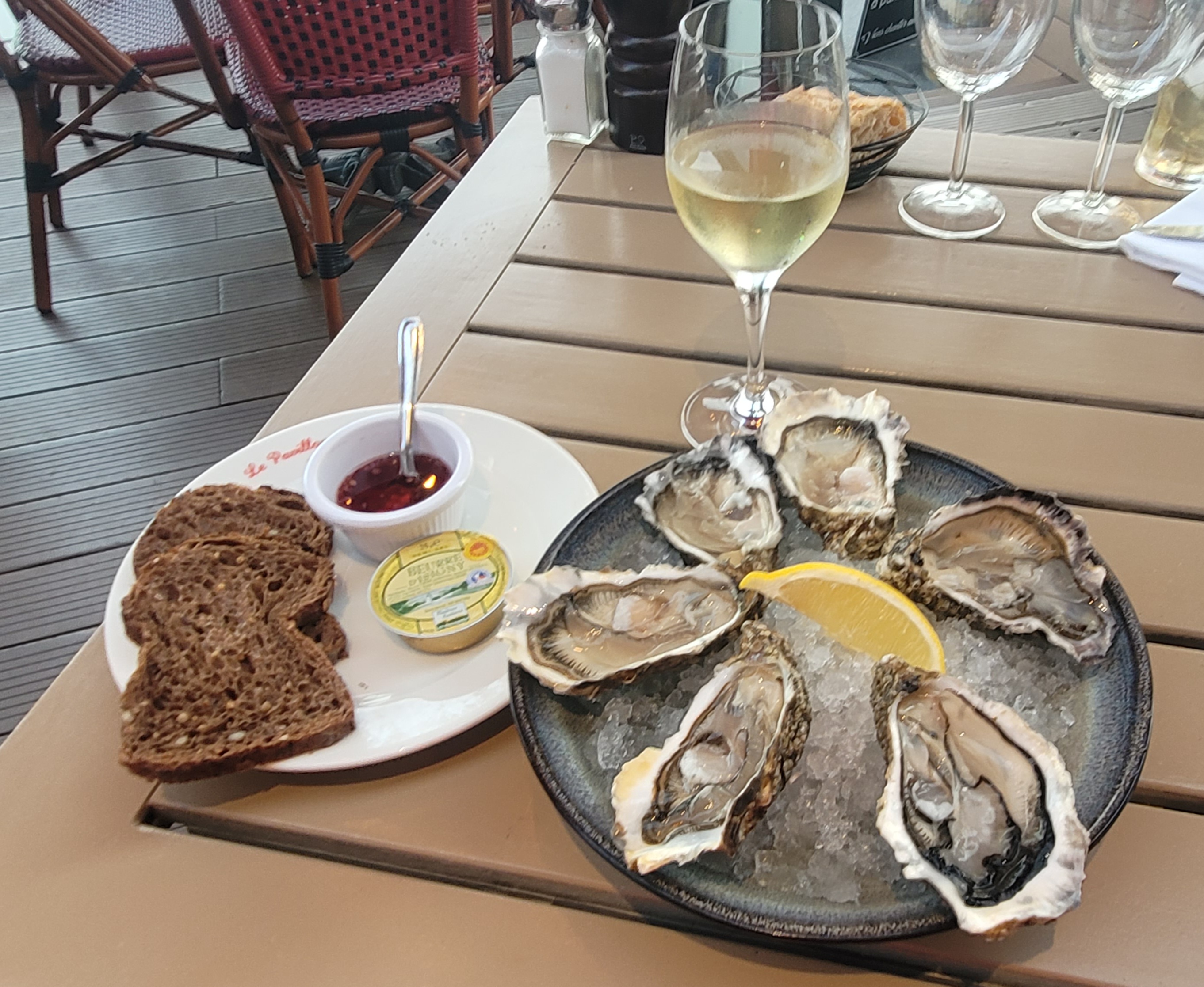 Serveuse et serveur gentils mais clairement en sous effectif samedi 16 juillet. Du coup, des plats qui arrivent dans le désordre, 30 min pour avoir une carte, huîtres qui arrivent sans vinaigre/échalotes ni beurre... Des plats quelconques pour une addition légèrement déconnectée.