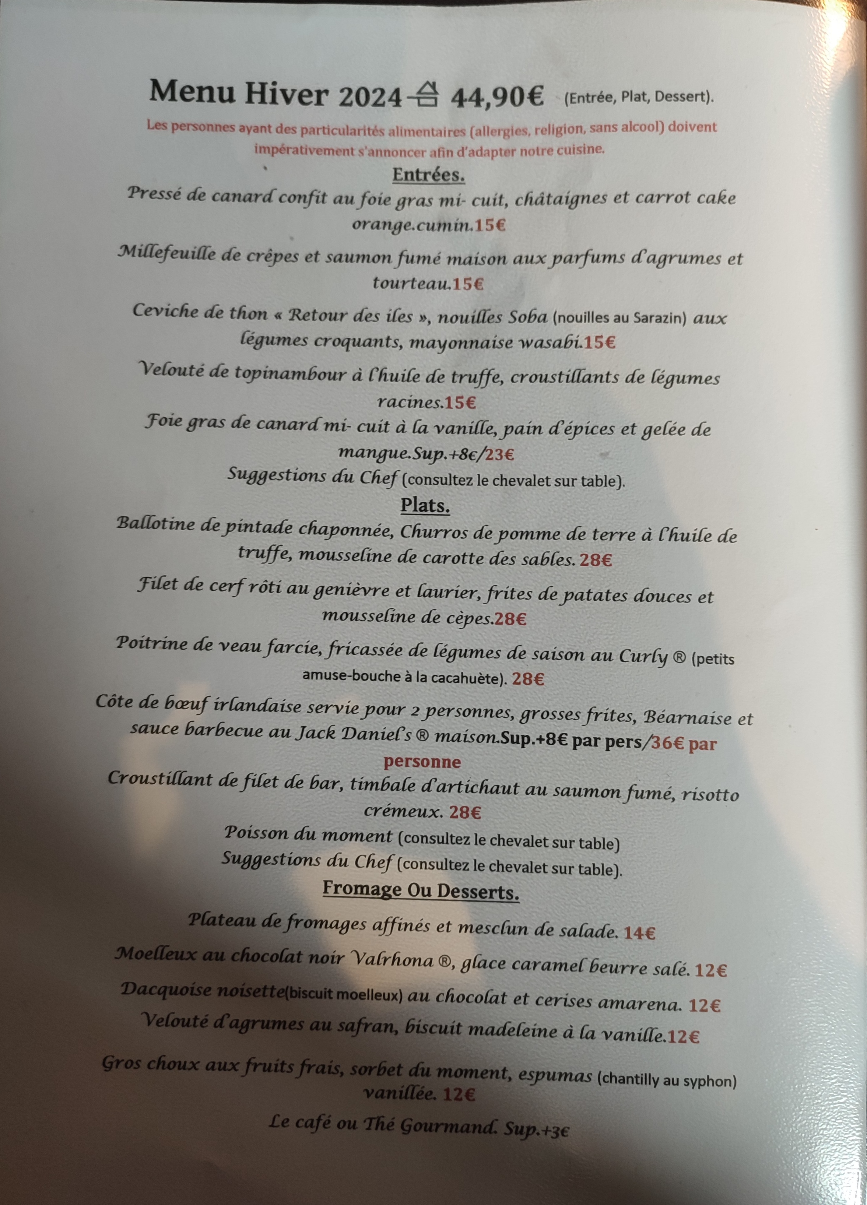 Menu très varié, très bonne cuisine, rapport qualité/prix très bien. Un des meilleurs restaurants de ma région !!!