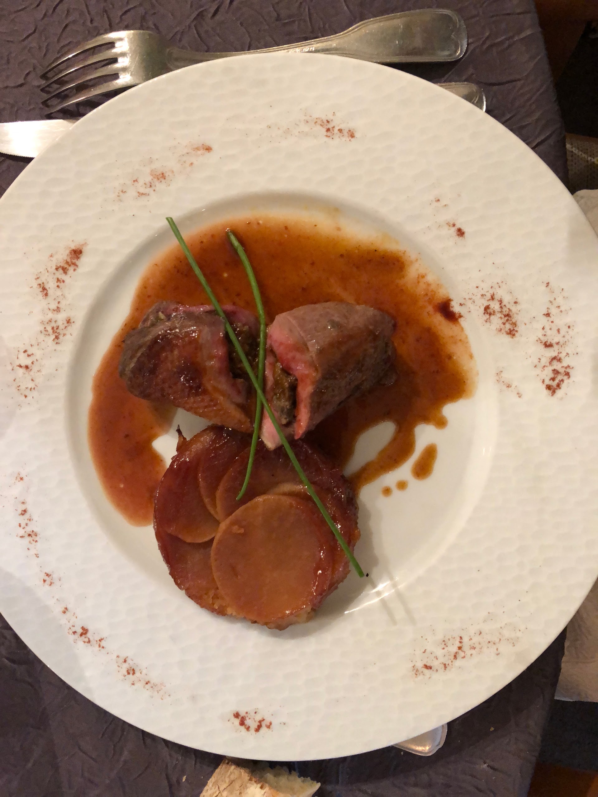 Accueil Gentillesse Professionnalisme Ces trois mots vous donnent l’atmosphère. Un menu royal, pressée de canard et foie gras, pigeon en pastilla aussi au foie gras (on se lèche les babines) cuisson parfaite, un fondant au chocolat . Un détour que vous ne regretterez pas.