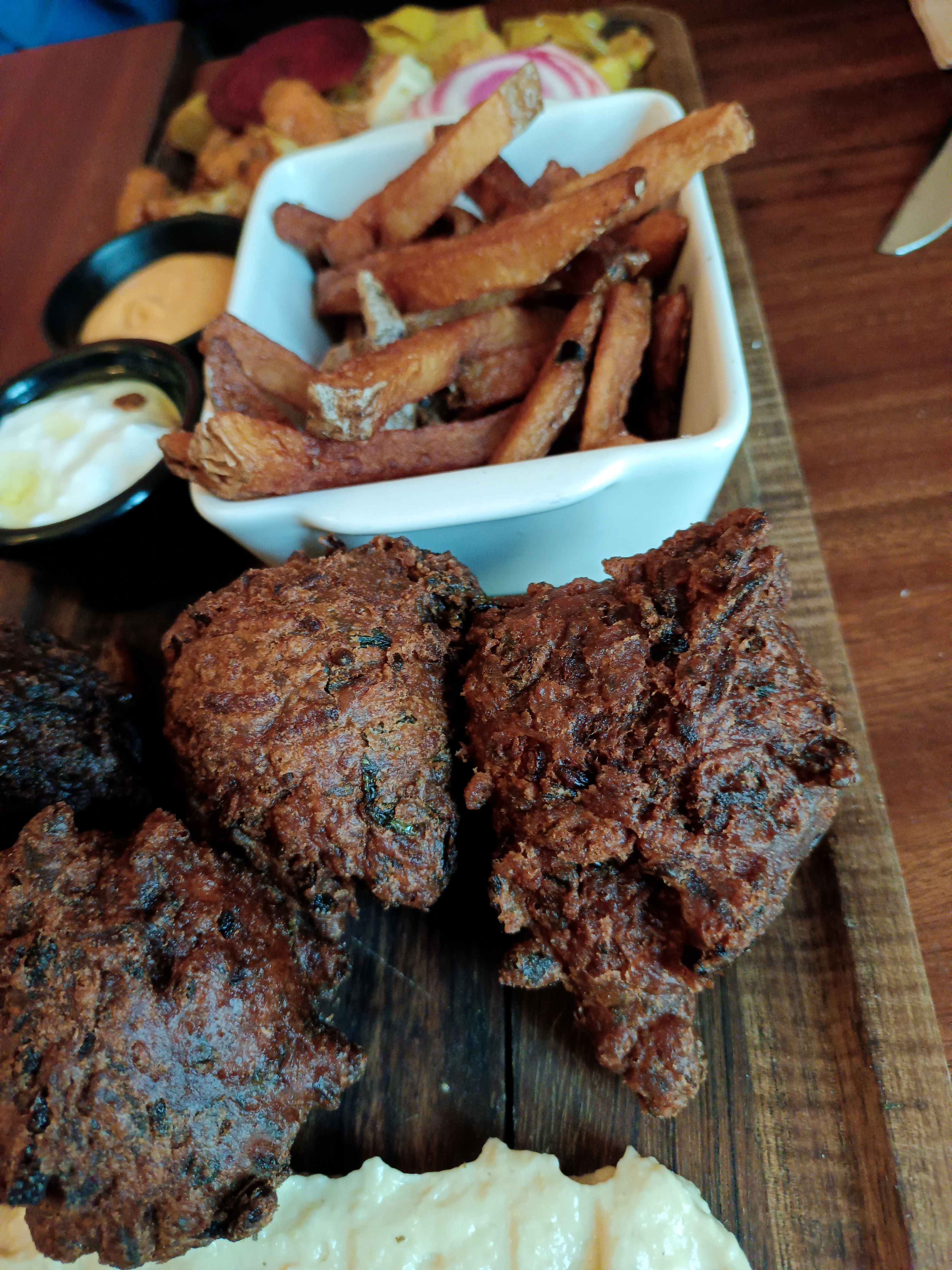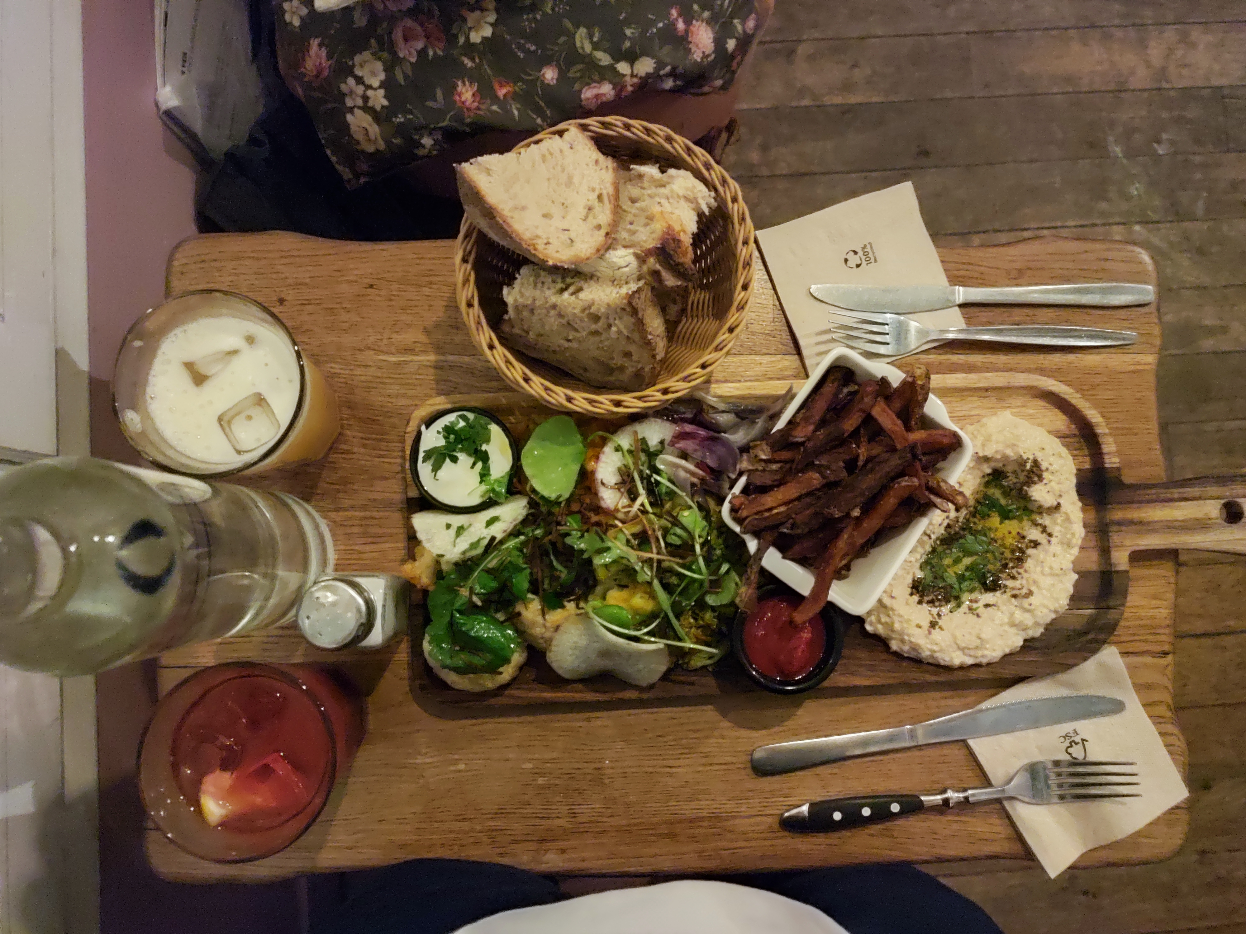 Planche végétarienne dégueulasse. Préparée des heures à l'avance. Houmous qui n'est pas du houmous. Assiette de fromage contenant des fragments de charcuterie. Inexcusable.