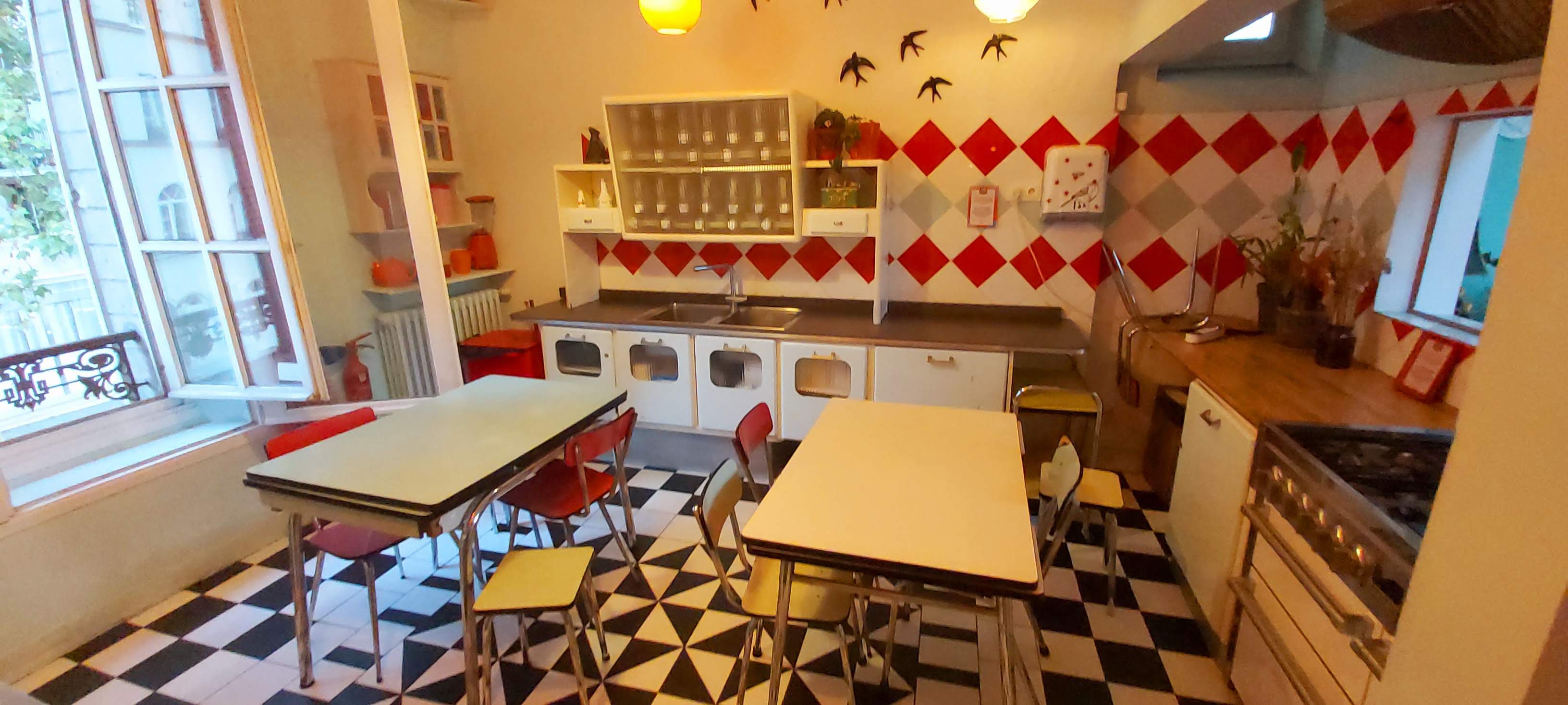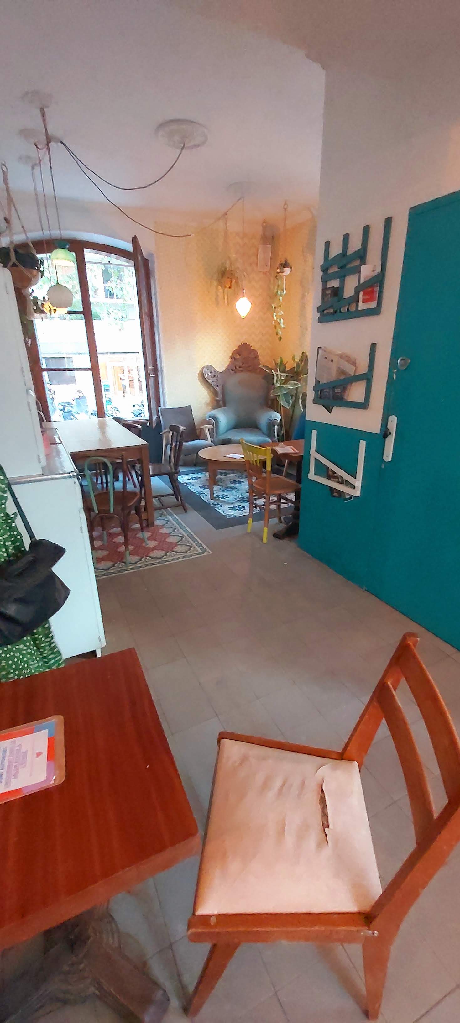On s'y sent tout de suite bien..On retrouve ses copains dans cette grande maison convertie en restaurant/bar en choisissant sa salle : cuisine, sallon, salle de bain, etc. La déco rustique nous fait un peu voyager chez notre mémé adorée. Nostalgie ! Pour la faim et soif il faut descendre se servir au rez de chaussée ou lon retrouve un personnel sympathique. Une carte courte de plats et des planches généreuse. Testée la planche mixte servie avec de très généreuses tranches de pain à tomber. Du vin correct à des tarifs abordables. Des jeunes et des familles (lieu kid's friendly) mais attention aux coworkeurs (sur les tables des affiches préviennent qu'on ne squatte pas de telle heure a telle heure avec son PC (notamment sur les heures de restauration). Quelque part on comprend car on pourrait y rester des heures ... comme à la maison !