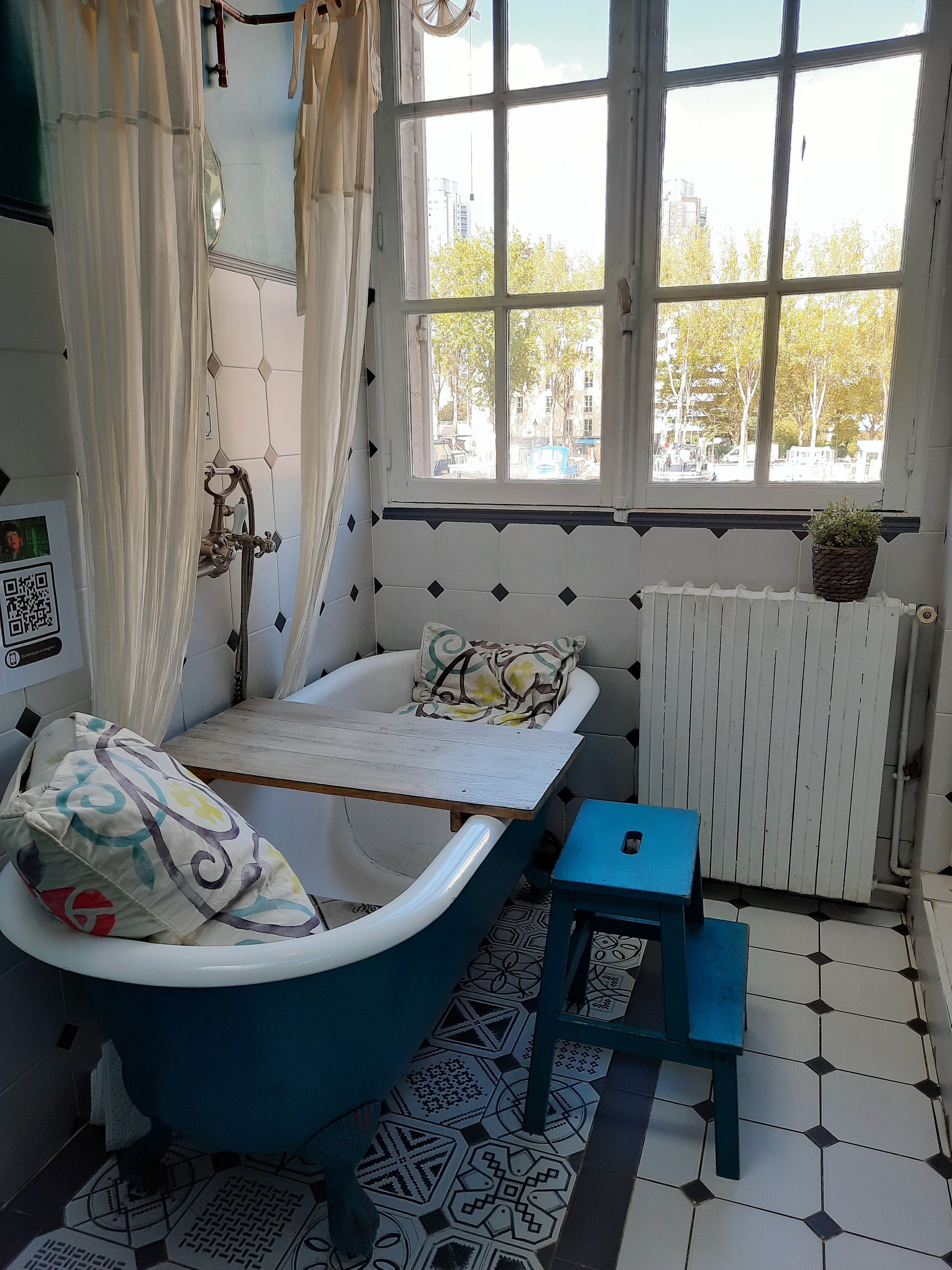 Boire un verre, au niveau des bords de seine avec le côté cosy de la maison? Vous avez trouvé LE lieu ! Découverte du jour. J'y retournerai pour tester le 1er étage. Ça doit être une sacrée expérience de siroter son thé glacé (ou autre) dans une baignoire avec des inconnus autour de vous lol En tout cas, bravo pour l'idée ! Qui plus est, le prix des consommations est très abordable