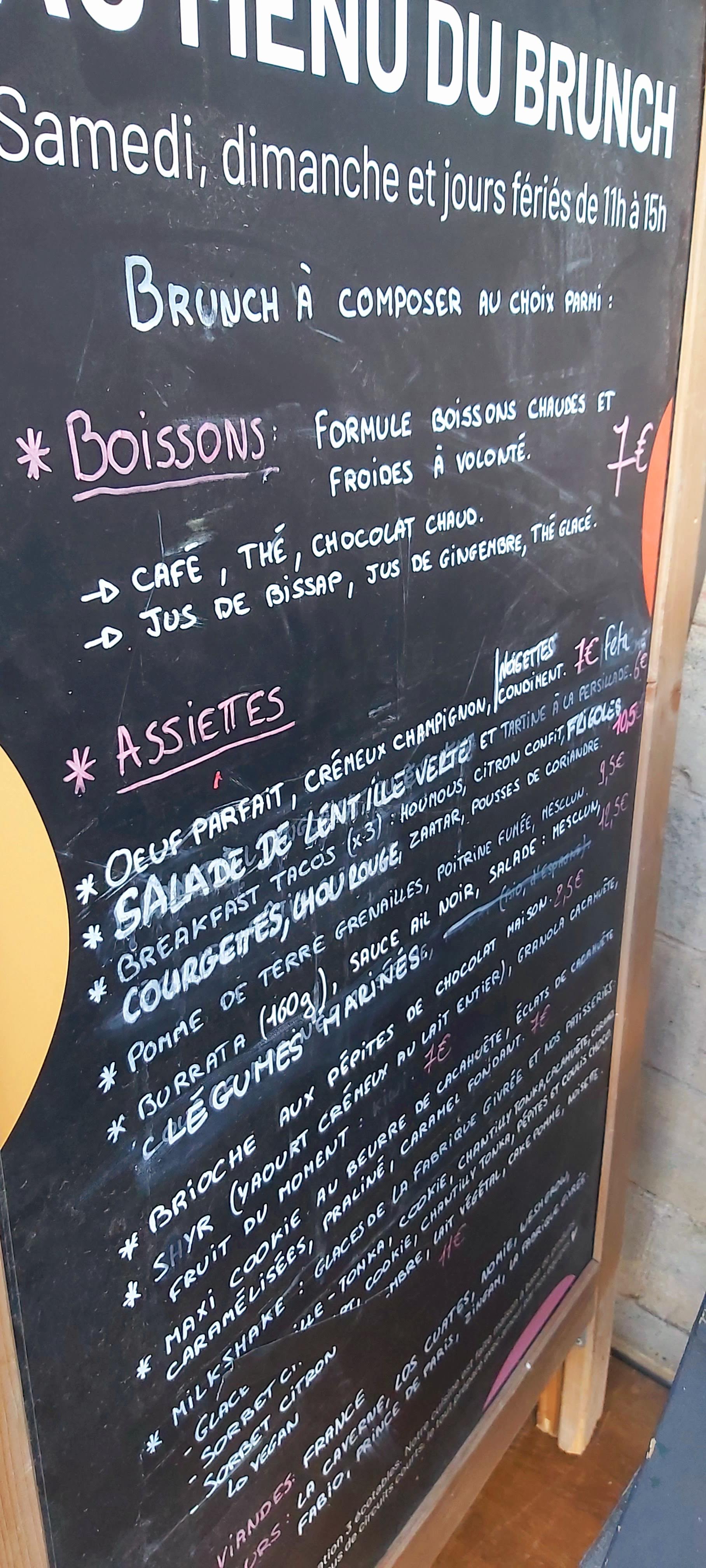 Bonjour à tous Nous avons pris la version brunch de 12h a 15h pour 28€ ou plat 15€ Si vous arrivez à accéder à la salle de bain situé au premier étage pour être en tête à tête c'est pas mal pour un genre insolite. 🤣😂 Vous avez de temps en temps la visite de ceux qui viennent ce laver le main après leur passage au wc ... Pas de réservation alors venez bien avant 12h si vous avez une salle en vue bien précise dans la maison des canaux 😉