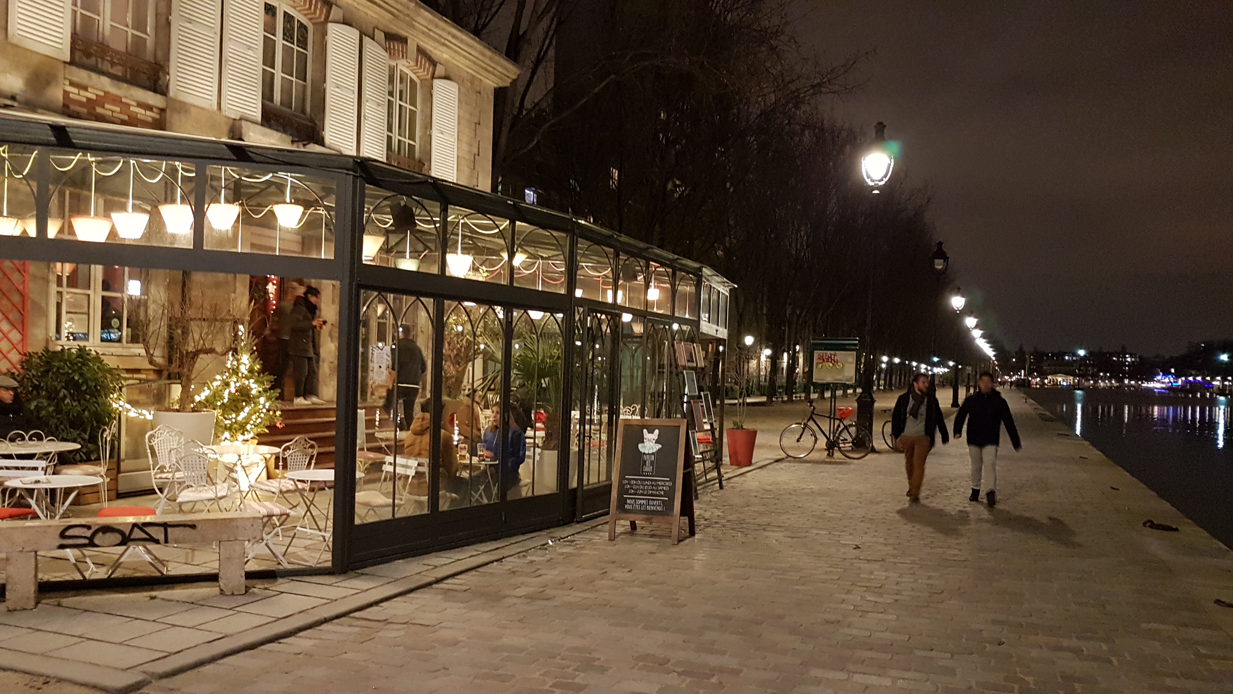 Un super lieu sur les quais avec une verrière très appréciable ! J’y suis allé car le pavillon hébergeait un petit marché de noël féministe et je doute que ça soit le seul évent qu’ils proposent ! Il est possible de manger et boire, il y a également des produits vegan et sans gluten.