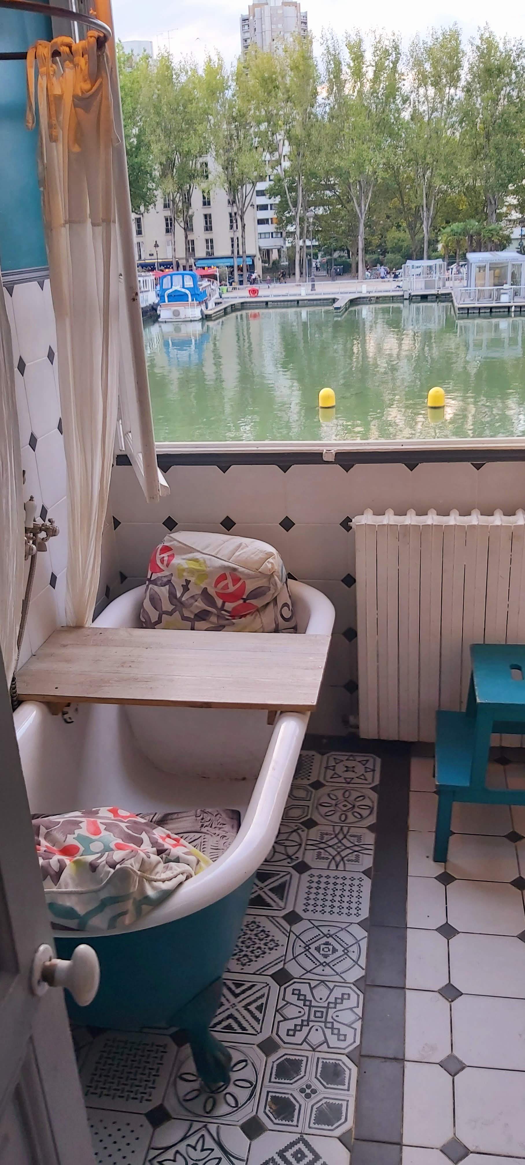 Une expérience unique à Paris. Balladez vous un dimanche d'automne dans cette maison ammenagée et arrêtez vous prendre un thé assis dans un lit ou déguster une part de cake accroupi dans une baignoire. La déco est très réussie, les produits préparés sur place dans la cuisine de la maison ;) et la terrasse sur le canal rajoute un vrai +