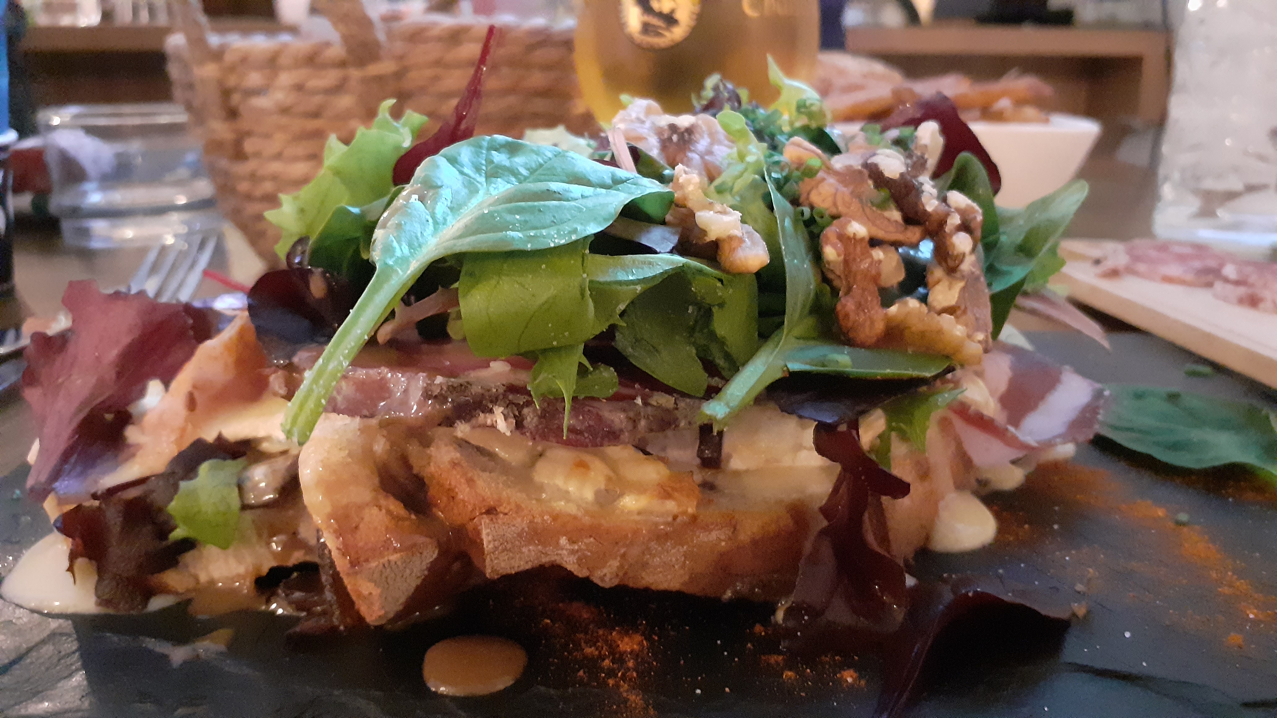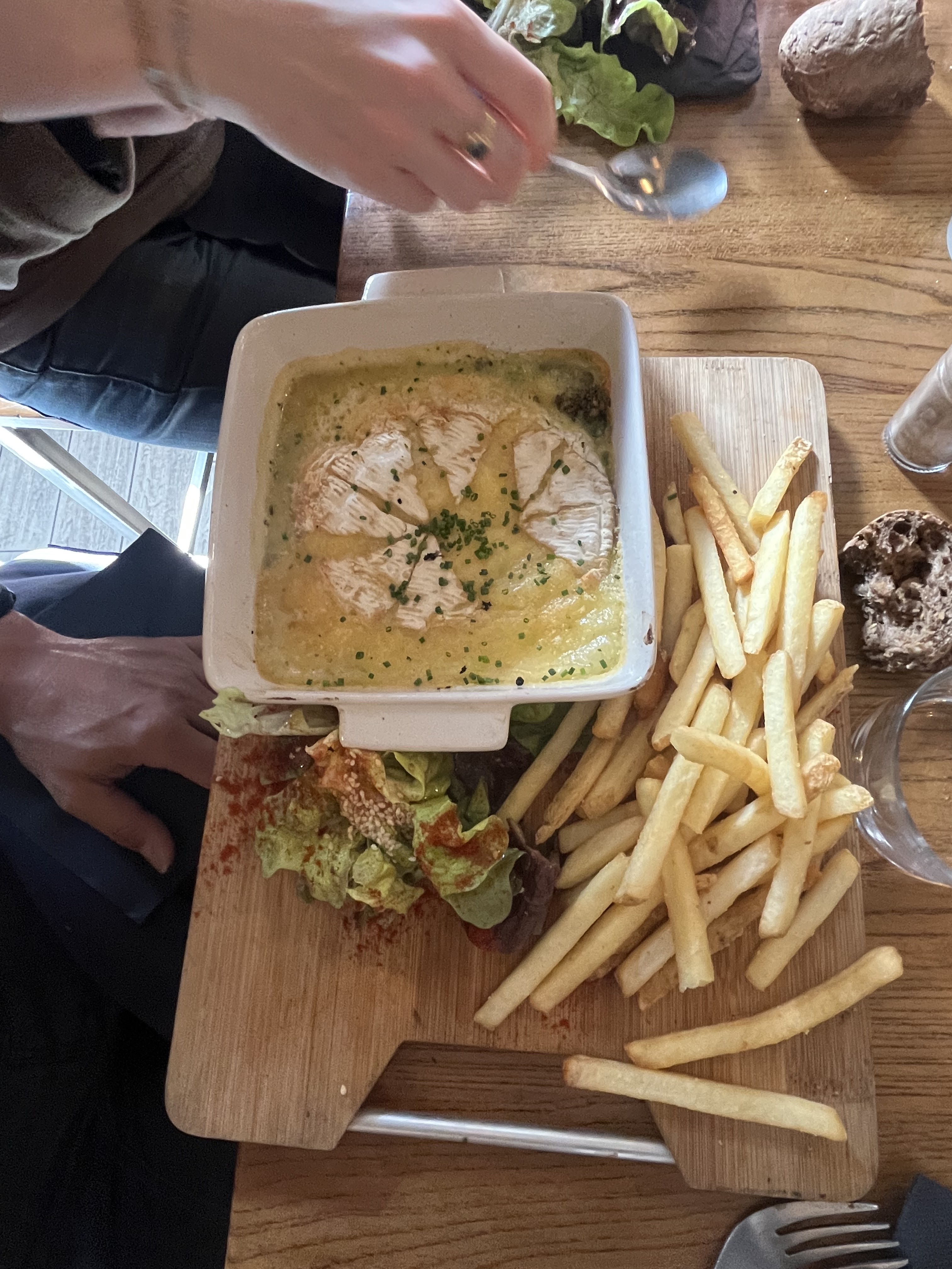 Camembert rôti excellent,nous avions le supplément charcuterie et la quantitée était largement suffisante face à cette assiette très copieuse. Nous nous sommes régalés ( dans un avis purement constructifs le camembert de ma compagne avait un petit peu trop d'ails mais sinon au top). L'ambiance chaleureuse et accueillante est vraiment très agréable. Merci pour cette bonne soirée et le bon repas