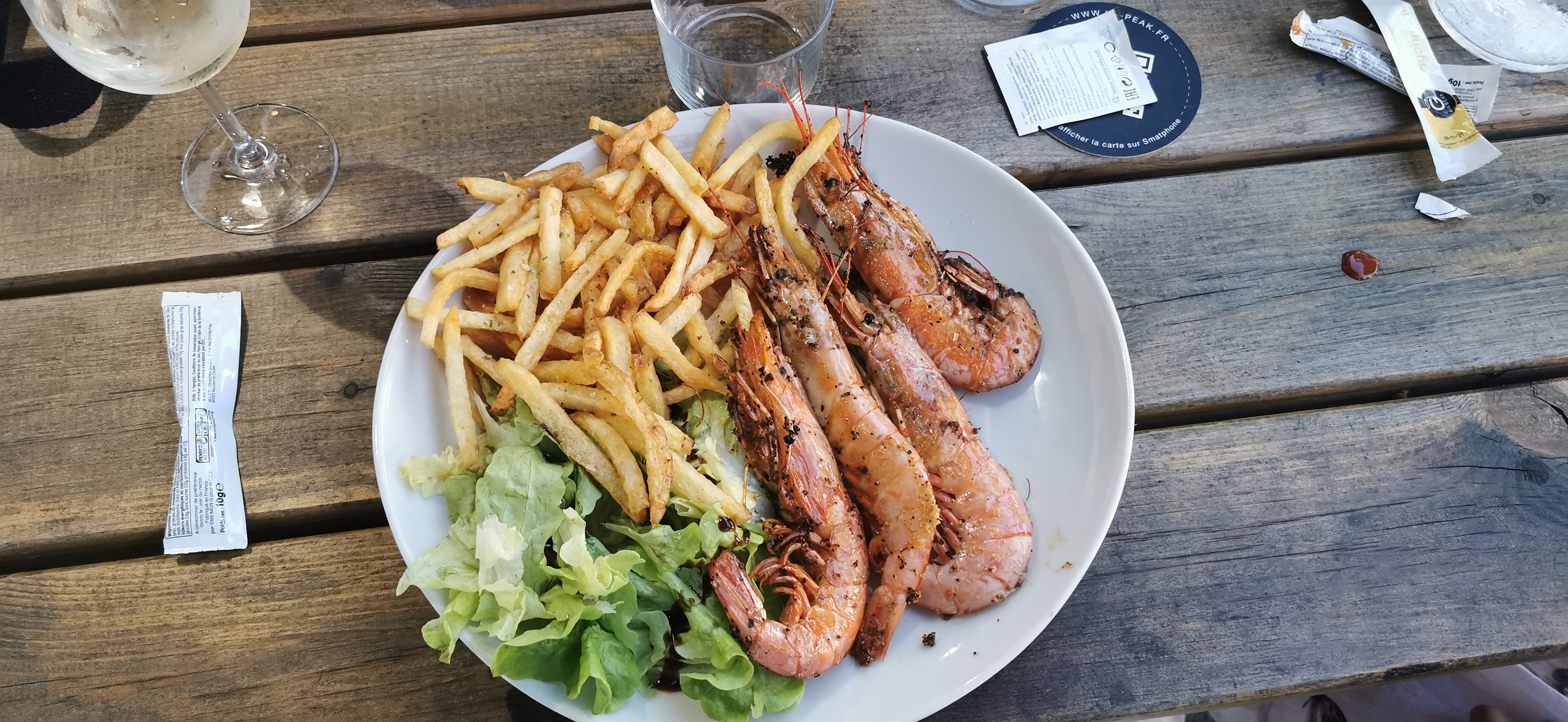 Les gambas grillées au pastis un régal très belle assiette service efficace et accueil agréable