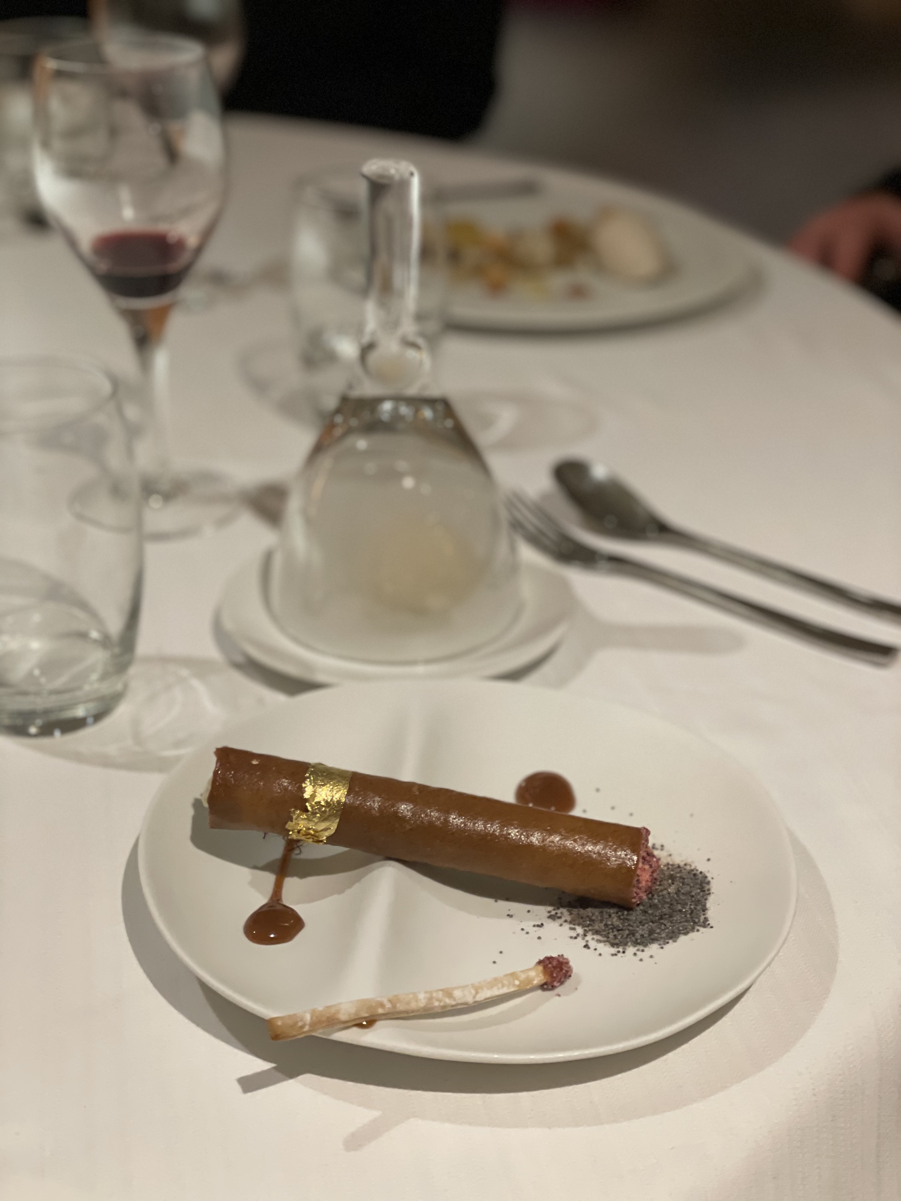 Plats gastronomiques avec une grande recherche et créativité. Note particulière pour l'originalité du dessert cigar en situation malgré le supplément pour le cognac qui l'accompagne et qui semble être compris à la lecture du menu! L'environnement et le cadre ne sont pas à la hauteur du menu. Le service est impéccable.
