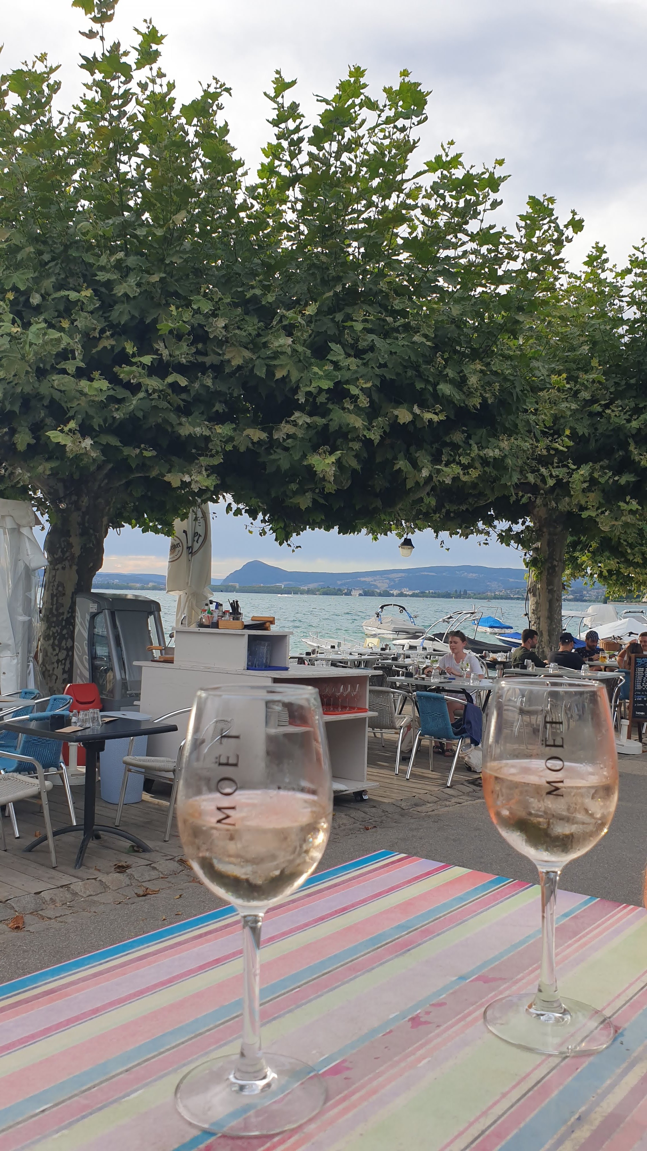 Super lieu, au bord du lac pied dans l'eau, rien à redire pour le repas ( seul bémole pas de ticket restaurant) sinon au top !