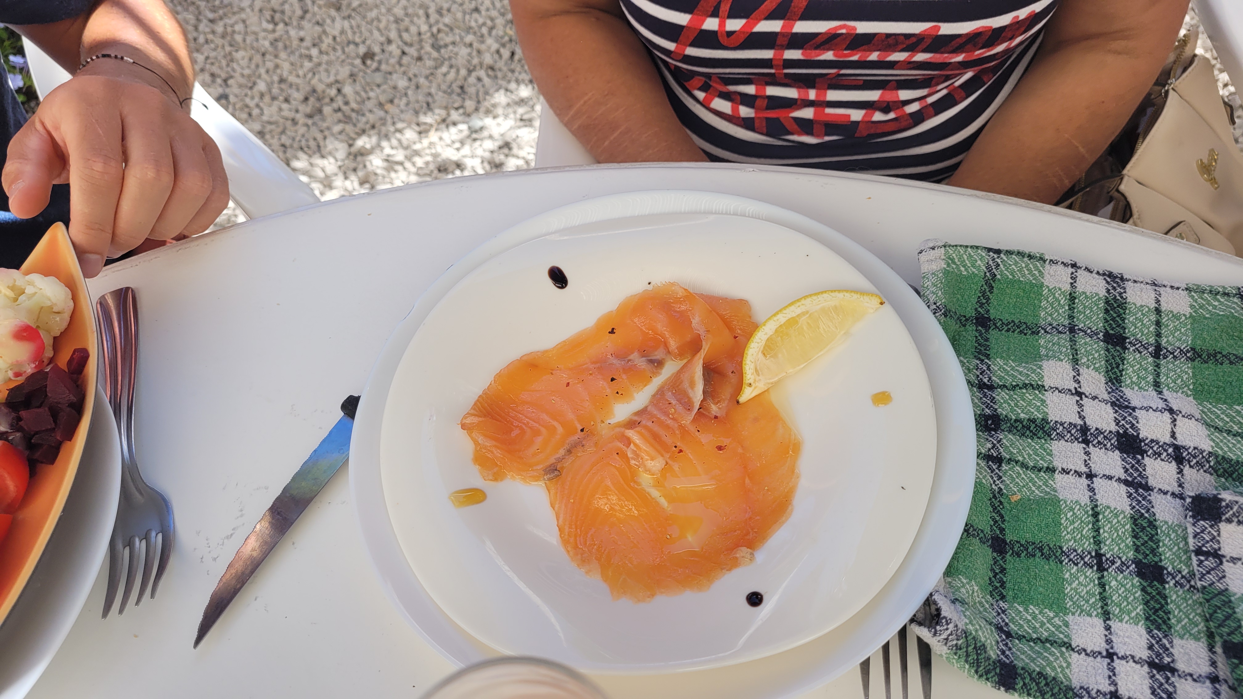 On était 2 il nous ont servi un repas pour 4.et c'était délicieux. Au bord de la mer avec feu d 🎇. Avec ma meilleure amie on a été ravie. Le service. Tout était très bien. ✌️ 💜 🌌. MERCI. EN SEPTEMBRE.