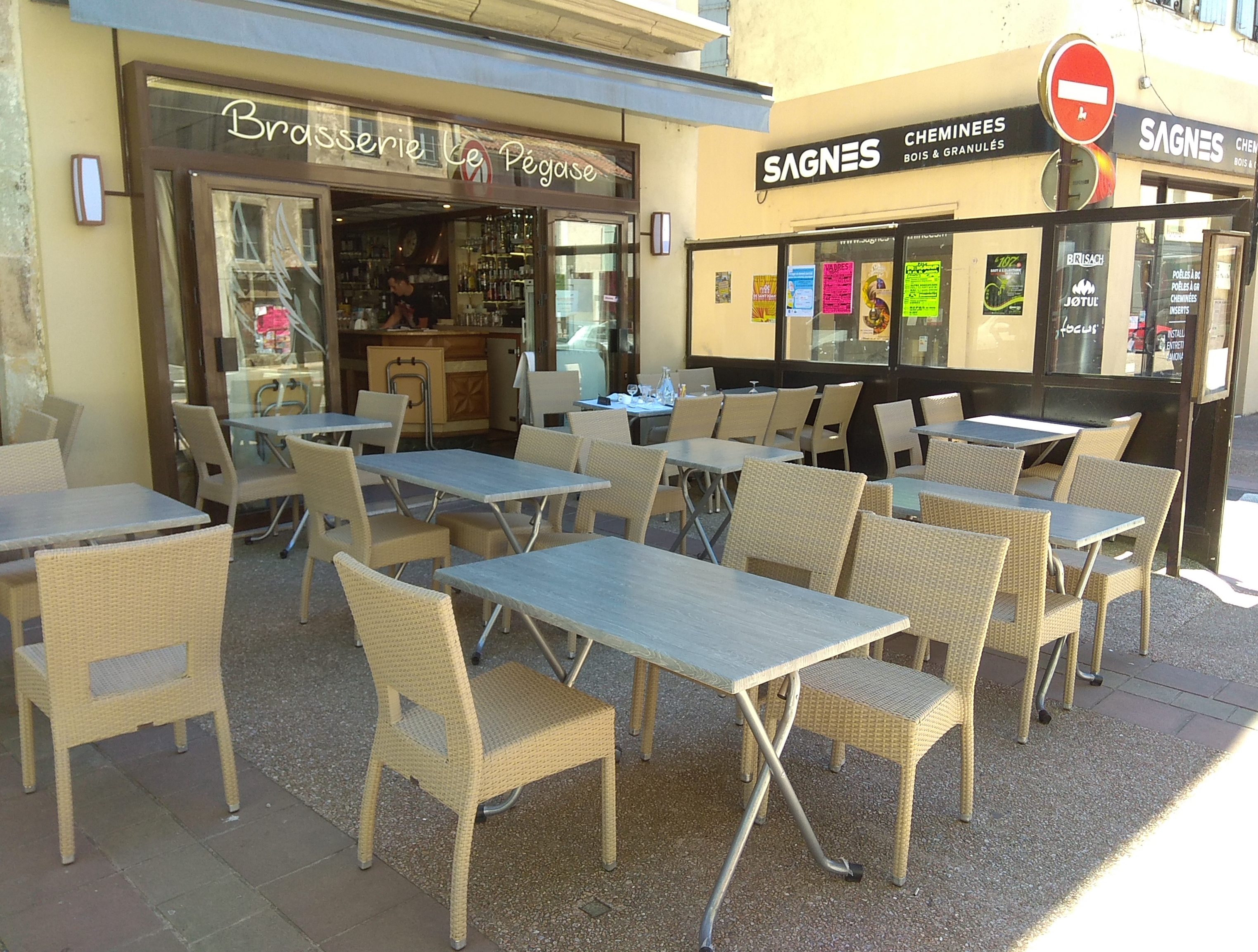 Service efficace. En semaine seulement le menu du jour avec choix entre deux entrées et deux plats. Bon repas et moment agréable au Pegase.