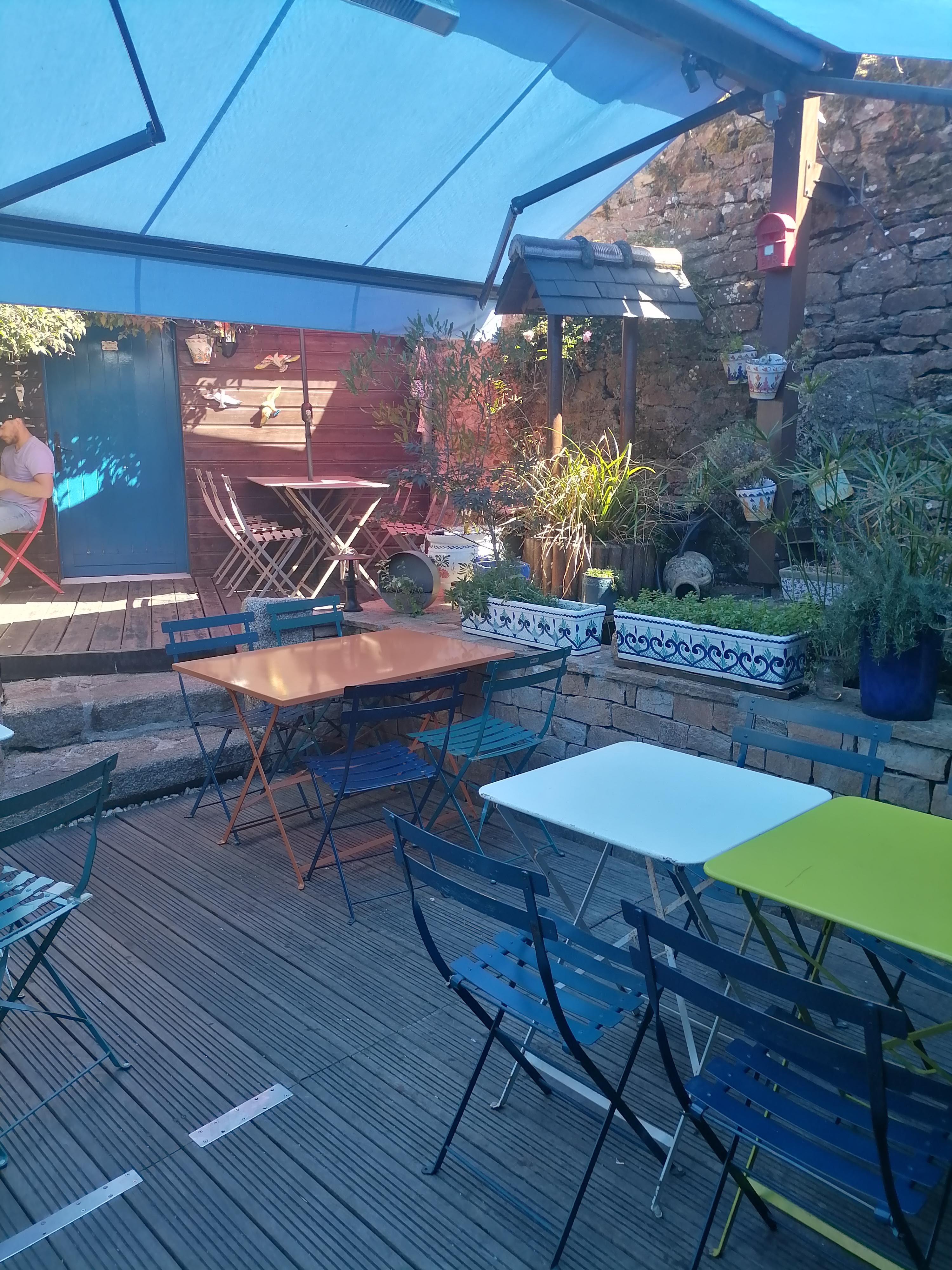 Jolie découverte dans une ruelle typiquement bretonne. Lieu accueillant dans tous les sens du terme. Jardin aux multiples couleurs et rouge-gorge au rendez-vous. La cuisine top, qualité et quantité, beaucoup de choix à des tarifs intéressants, service rapide et chaleureux. Serveur et patron super agréable, Merci vous avez été notre rayon de soleil sous un ciel breton légèrement pluvieux👌😉