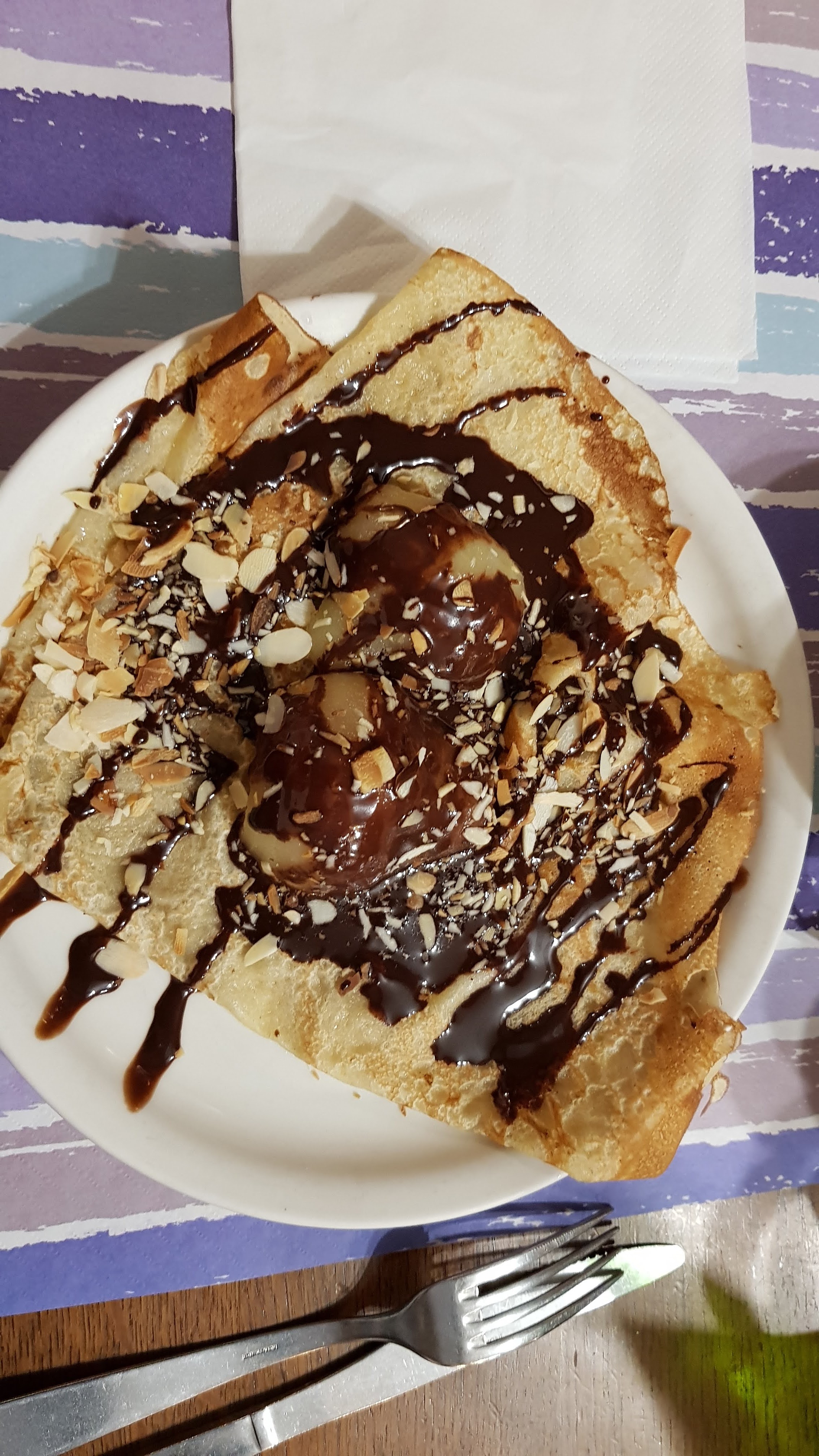 Crêpes un peu cher pour 1 crêpe et un tout petit peu de chocolat ou de beurre salé. Mais l l'endroit est touristique et les commerces en profitent. J avais prévu d y manger un soir, je vais y regarder à 2 fois