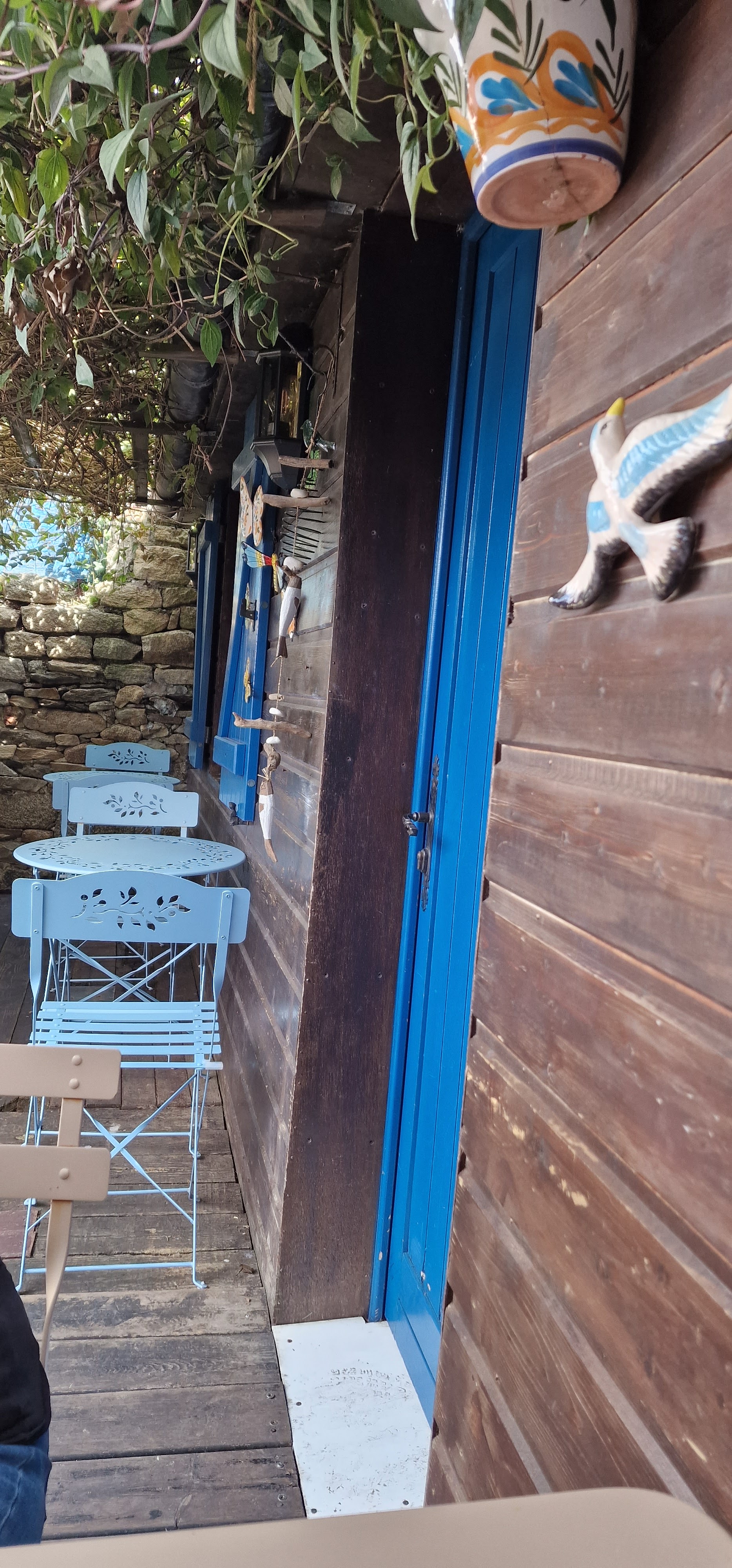 Belle endroit . La jolie devanture cache 2 belles salles ou la porcelaine de chez Henriot et les meubles bretons me rappelle mon enfance. Et la tres grande surprise, c'est la belle terrasse extérieure pleine de couleurs,d'une fontaine,des jolies plantations. Personnel et patrons sympathique