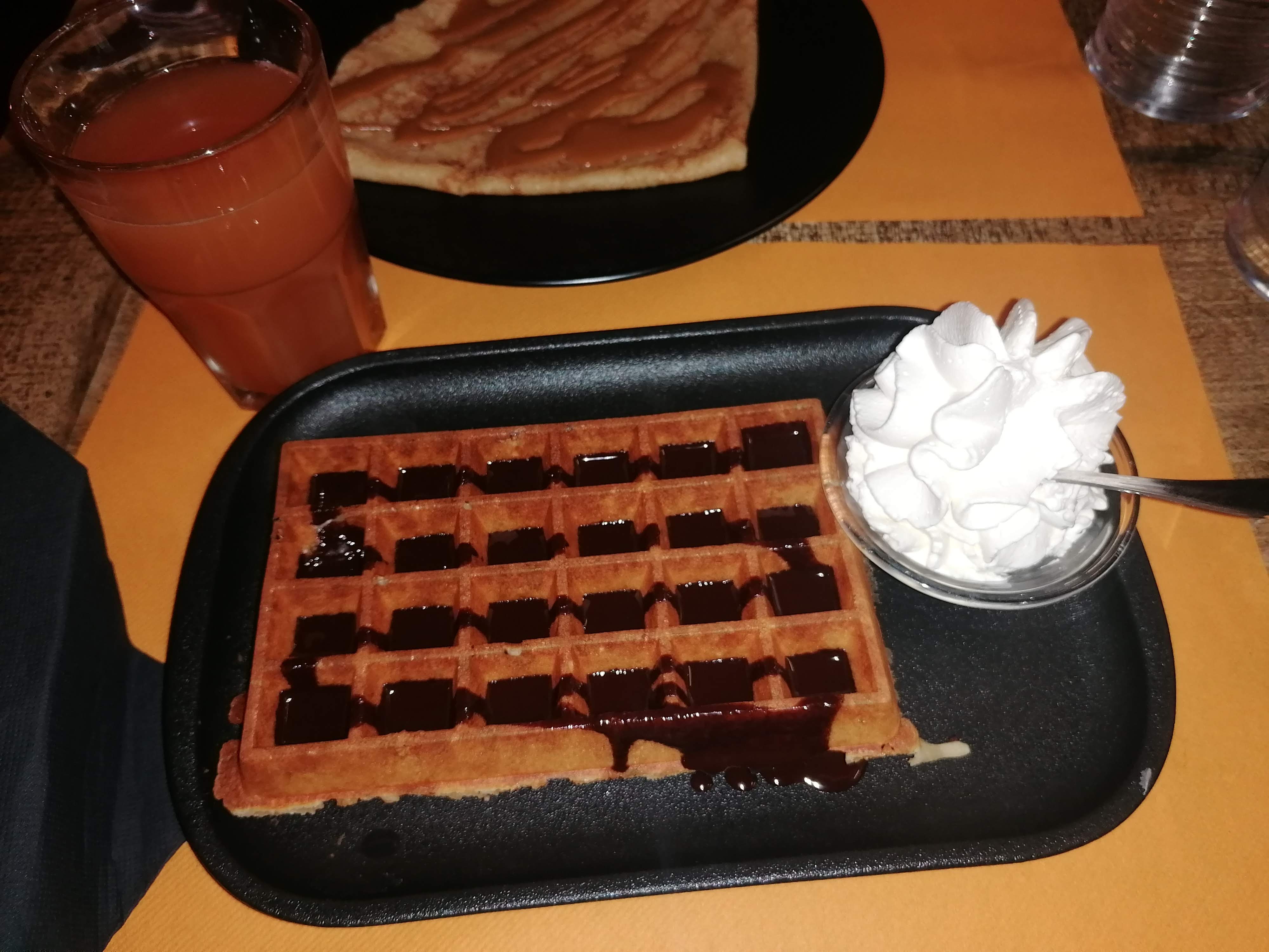 Personnel agréable mais reçu le thé froid et les gaufres un peu dur et pas de goût et crêpe noyé dans le jus, je ne le recommande pas