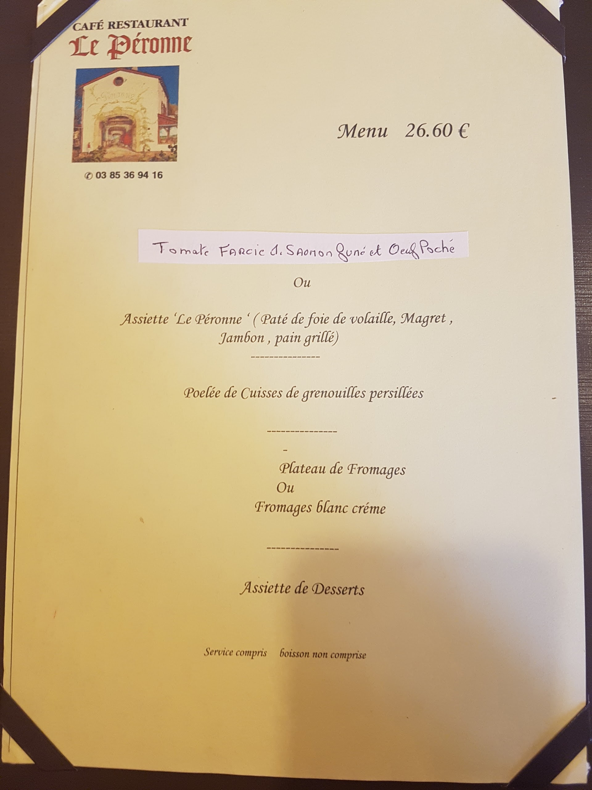 Endroit bien tranquille dans un petit village à péronne à 20 minutes de Mâcon sur la route , Route du pâquier , D 15 🚜🚕. Prend Cb A découvrir cette endroit ont ni mange bien ,bravo au chef cuisinier très passionné. La décoration bien français dans les petites villages agricole vignobles. 👍