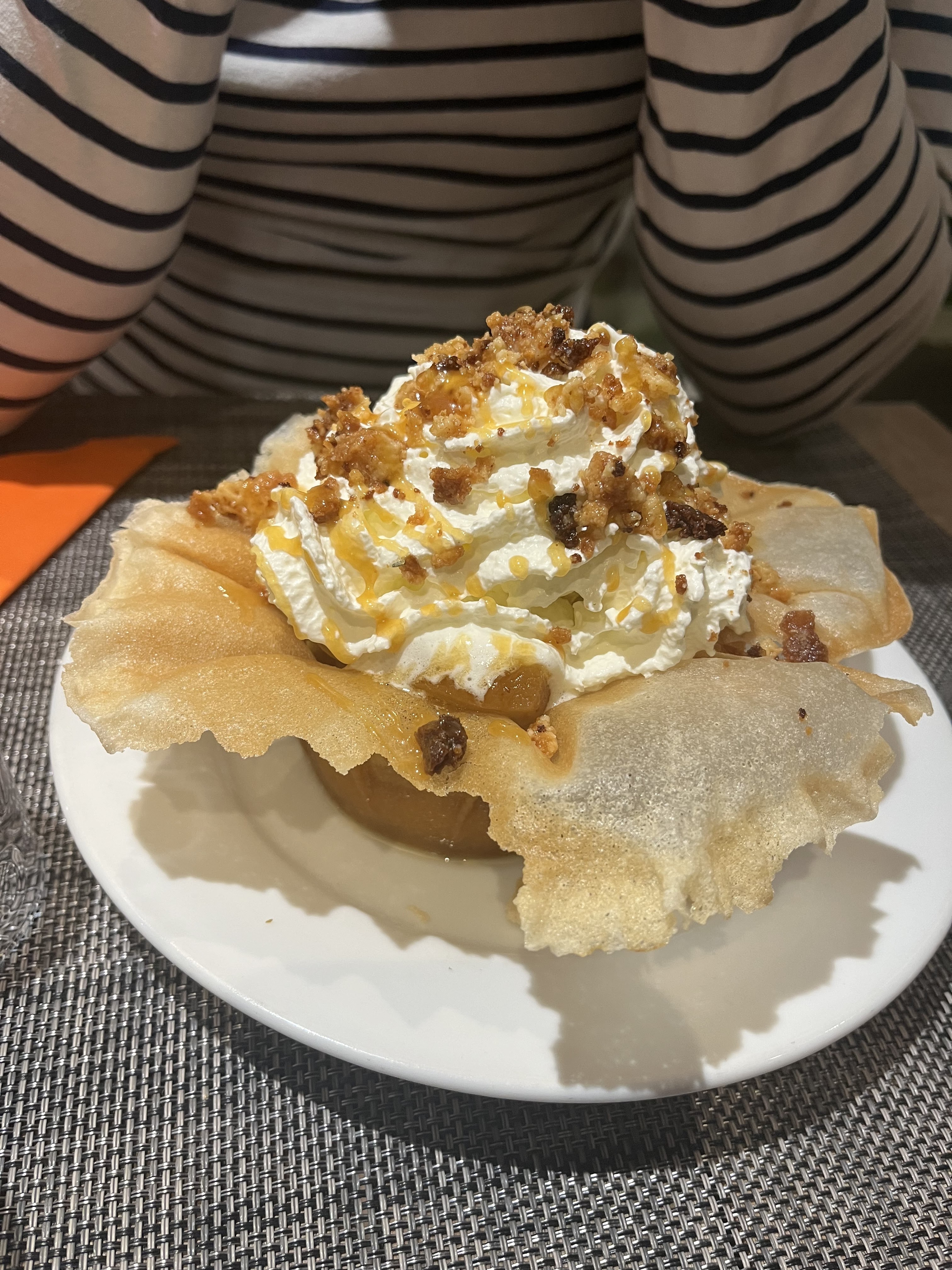 Choisi parmi les restaurants du port de Santa Lucia, grâce à une carte attrayante. Ce fut parfait ! Du Virgin mojito au café gourmand pour lequel j'ai fait un petit caprice 🤭. Ma fille : Le mille feuille de saumon, masterclass !