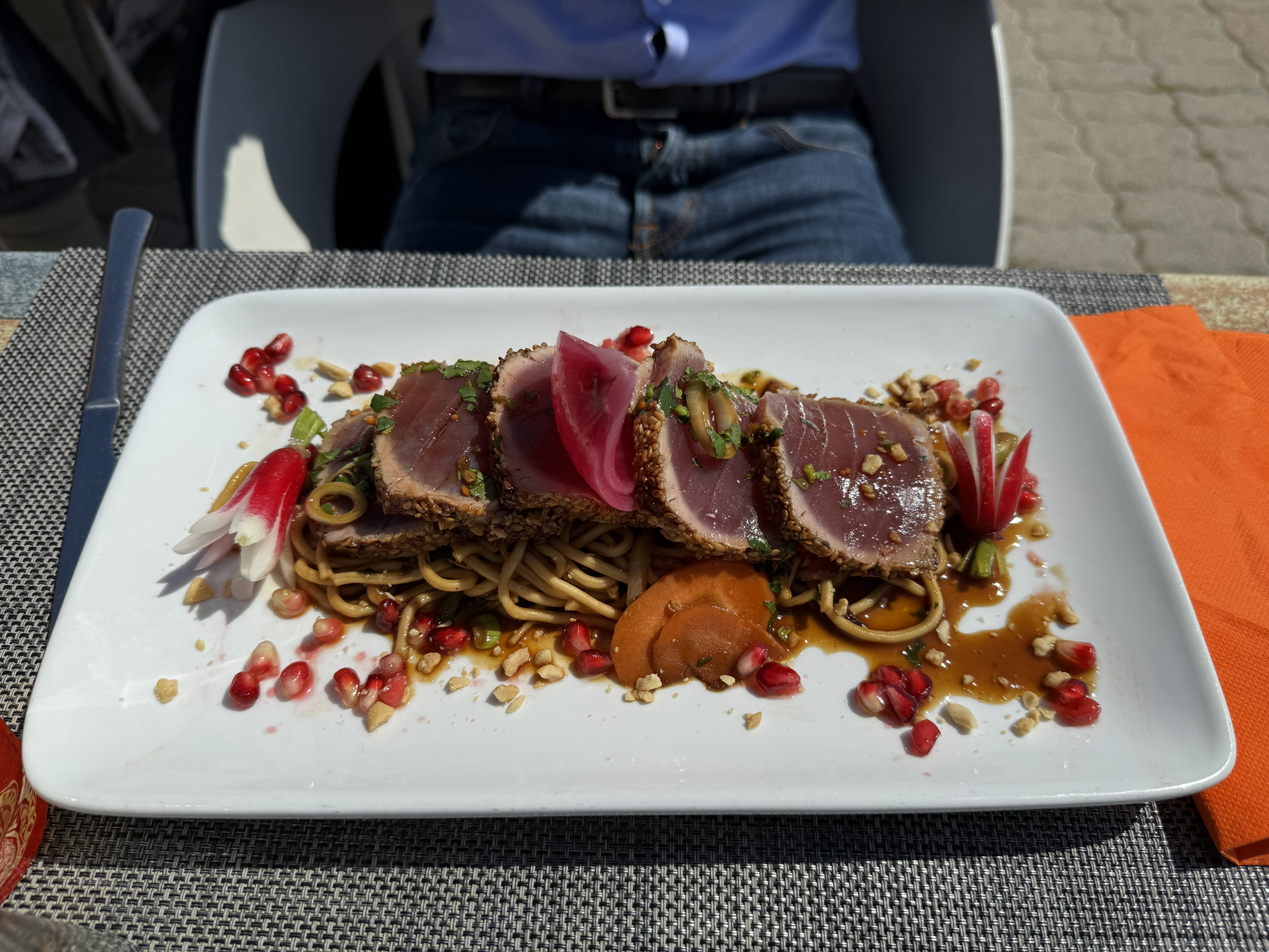 Escale au port de Santa Lucia, et quelle découverte !!! Nous avons mangé un Tataki de thon et de bœuf... une tuerie !!!! Accueil super, simple et sympathique, soirée extra... nous reviendrons