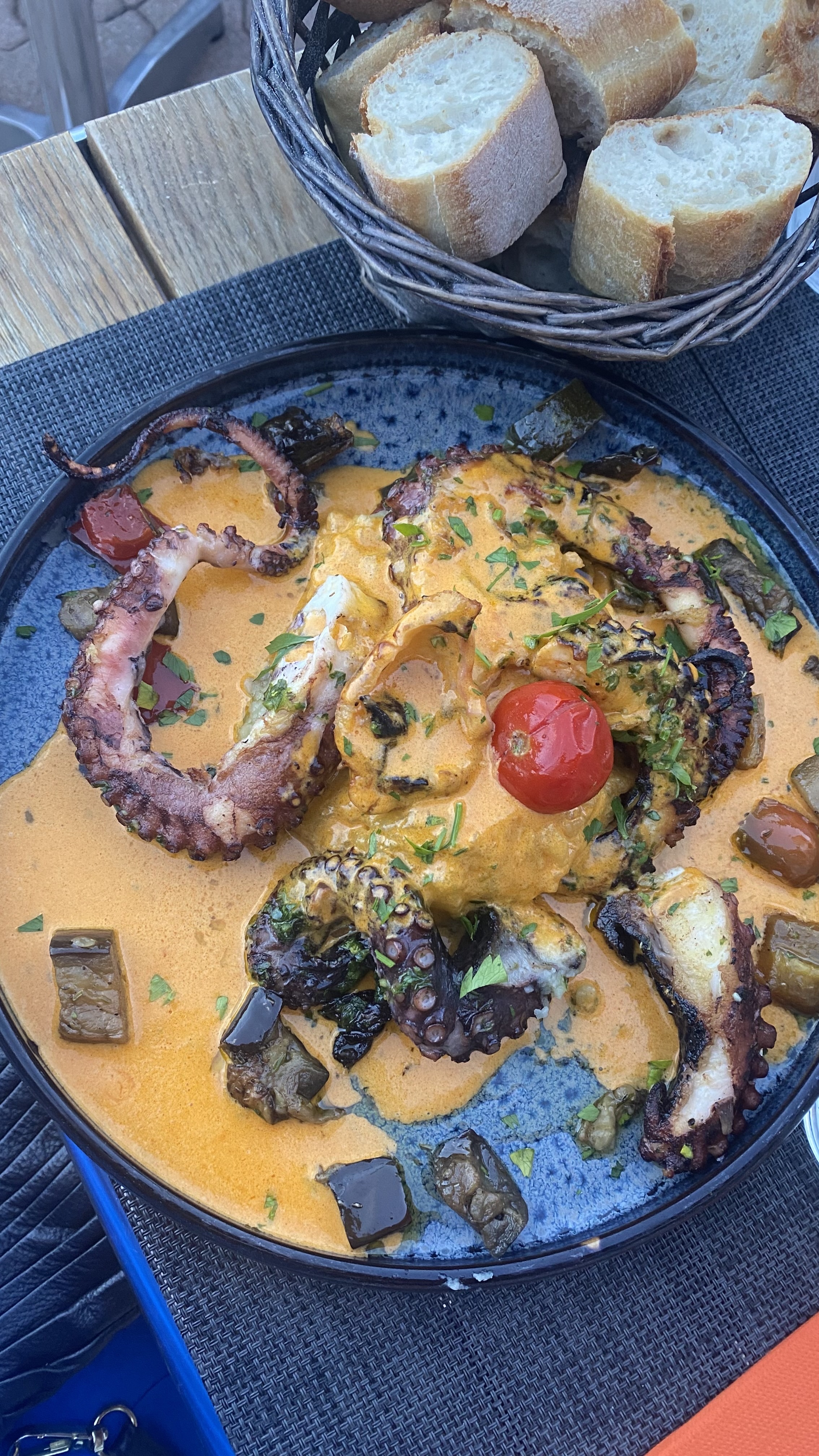 Superbe découverte entre amis, des plats à lécher les assiettes, un très bon accueil et un emplacement privilégié sur le port. La seule recommandation c’est de s’arrêter et de déguster. Du poulpe, de la soupe de poisson et pour finir un pain perdu, du rêve