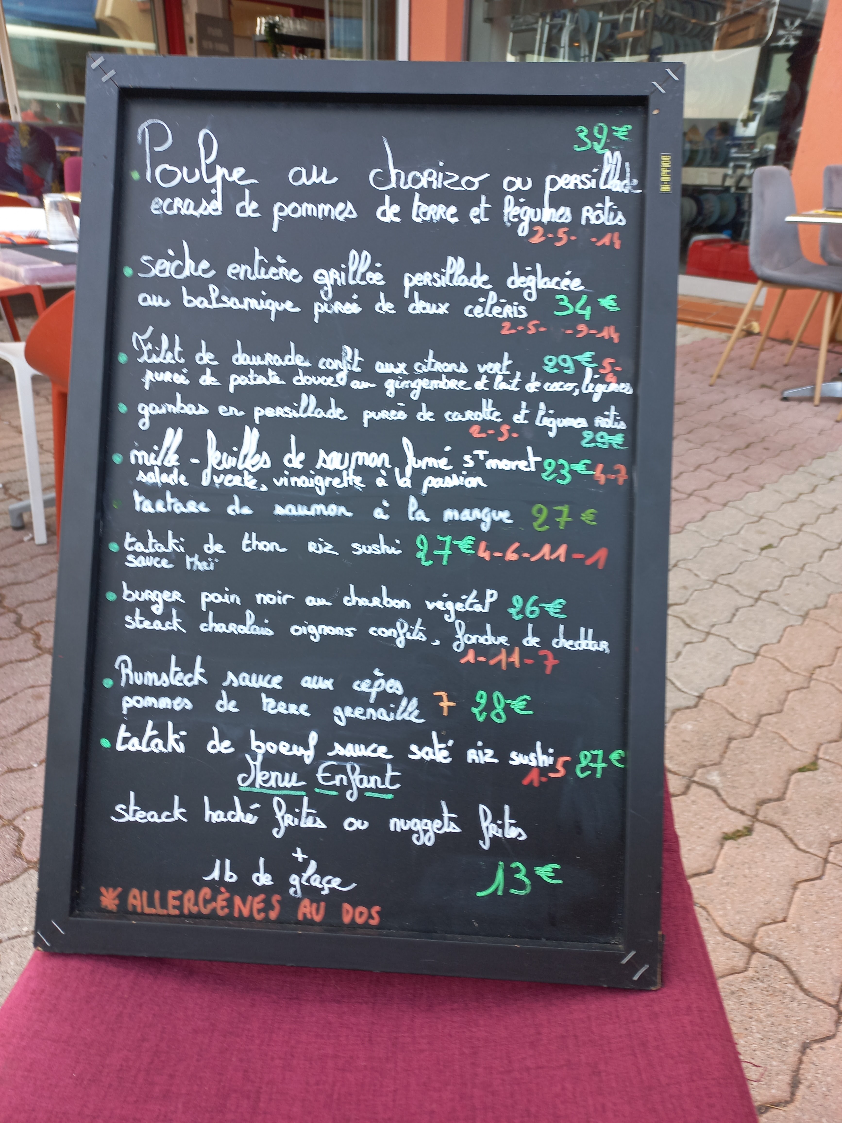 Sur le petit port de sainte Lucia, loin du brouhaha et des voitures de Saint Raphaël. Les plats sont délicieux et copieux ! Une petite carte sur un tableau mais des plats élaborés !