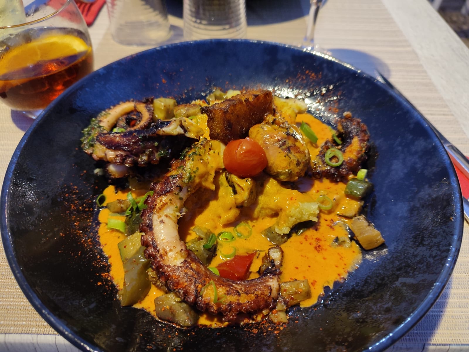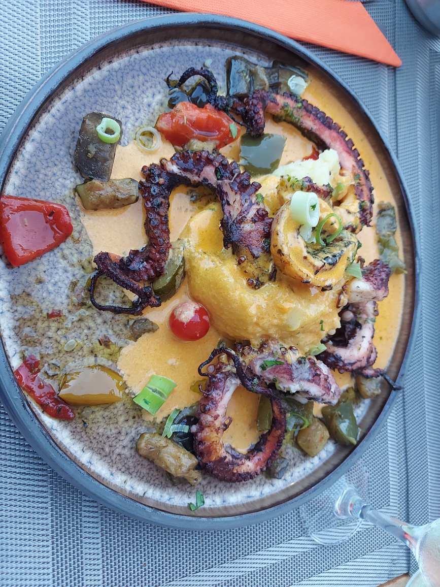 Nous avons pris la spécialité, le poulpe au chorizo, c’était excellent !! Tout comme les desserts. C’était très bon.
